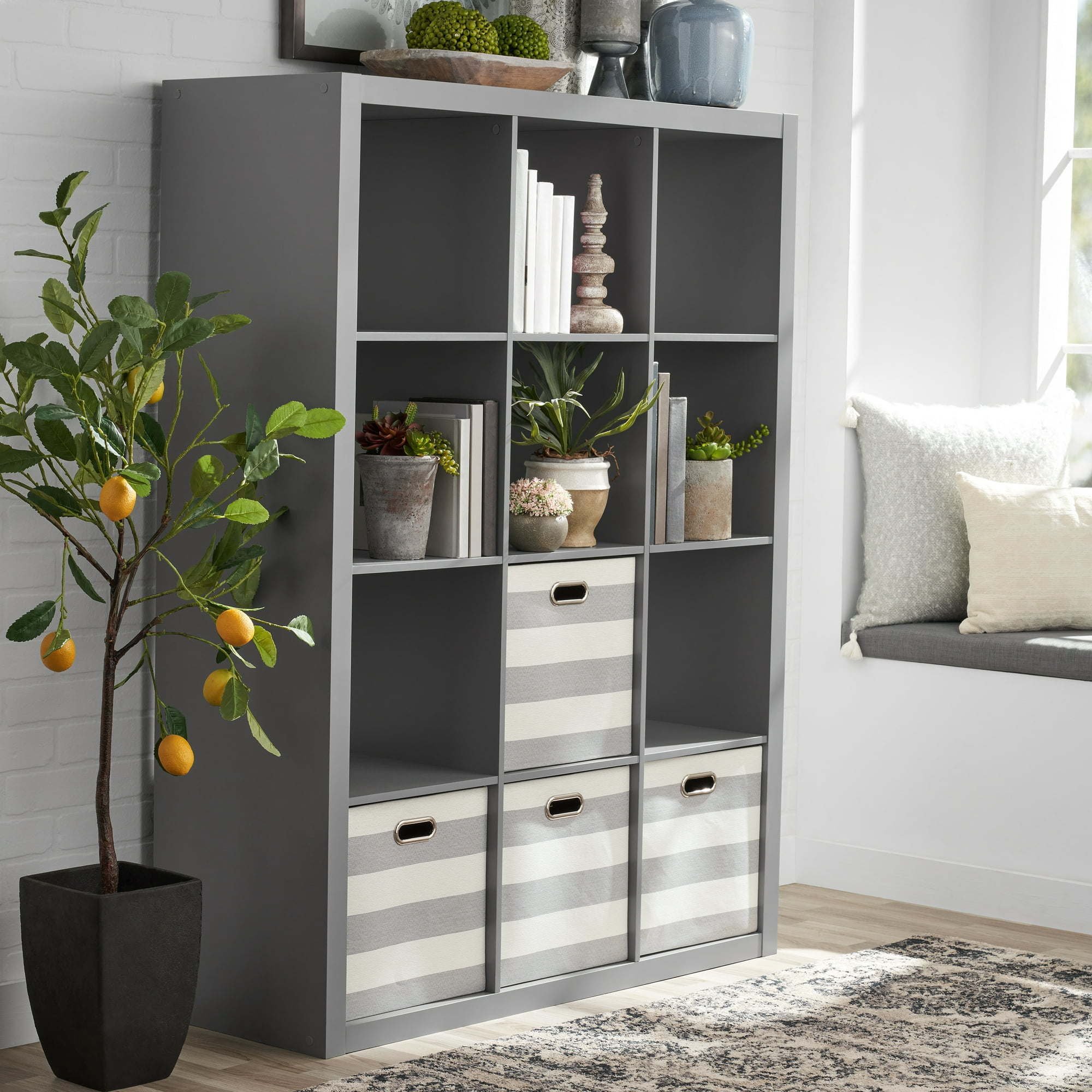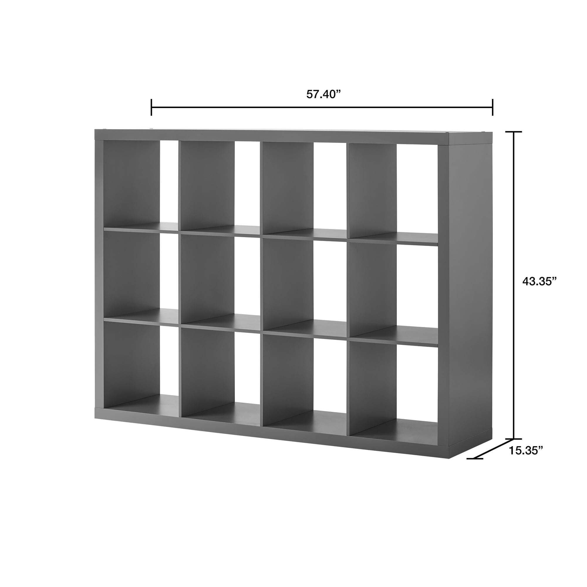 Add function and style to your home with the 12-Cube Storage Organizer. Available in multiple finishes, including both solid and wood grain options, this cube organizer features twelve 13" x 15" x 13" compartments, the perfect size to display books, collectibles, photos, artwork, storage bins and baskets. An open back design makes it easy to manage cords and cables. This sturdy bookcase can stand vertically or horizontally to best suit your needs and space. The top panel supports up to 100 lbs and each cube supports up to 30 lbs. Combine it with other Cube Organizers and Cube Storage Bins (sold separately) to create a complete, customized storage and display system. Easy to assemble with included wall attachment safety system, the 12-Cube Storage Organizer is perfect for your office, living room, den, playroom and more.