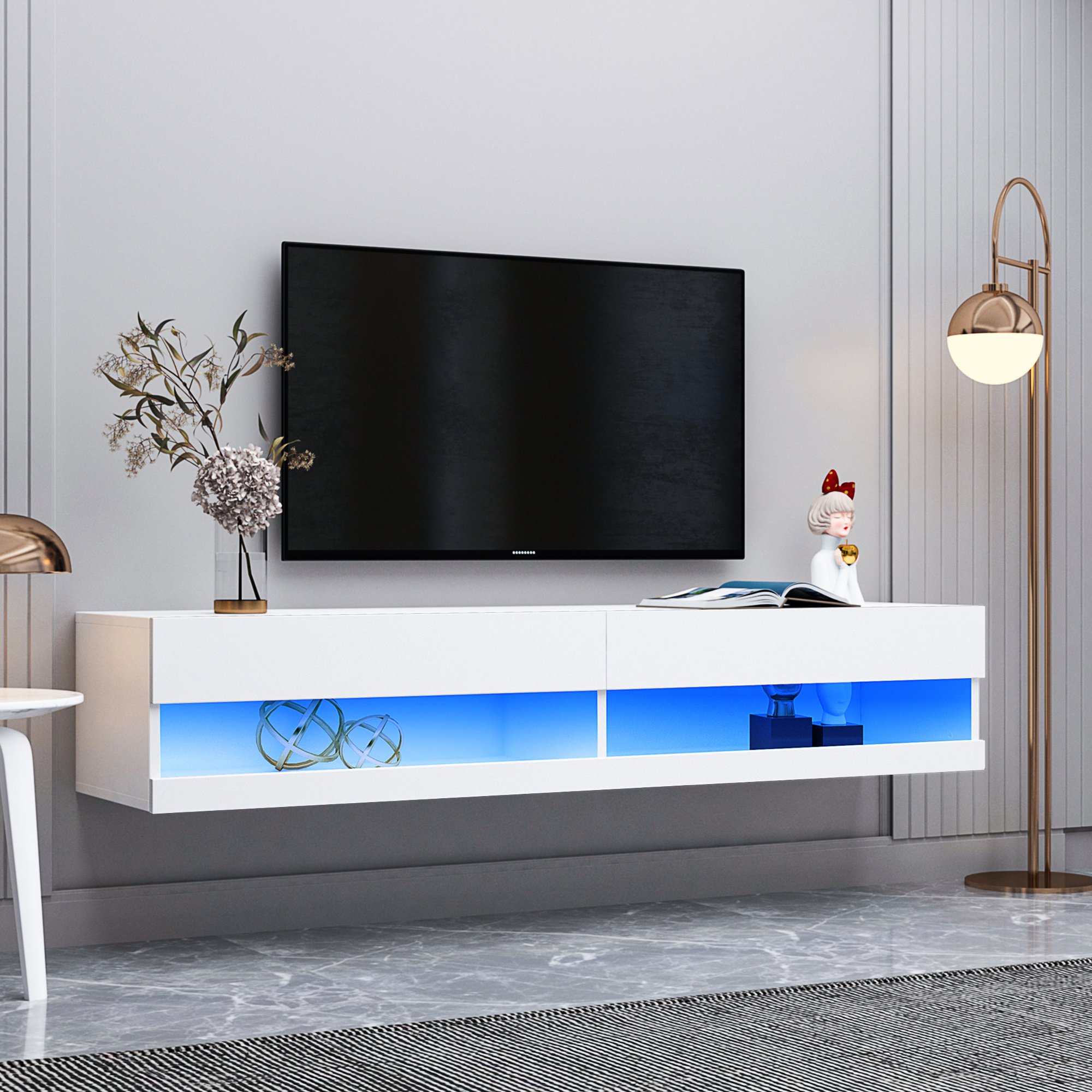 Floating TV Stands good for up to 80" TV, Floating Entertainment Center Walls,With LED lights, 16 kinds of monochrome and 4 kinds of color change, Wall Mount TV Stands,Wall Mounted Media Consoles & Hanging TV Consoles