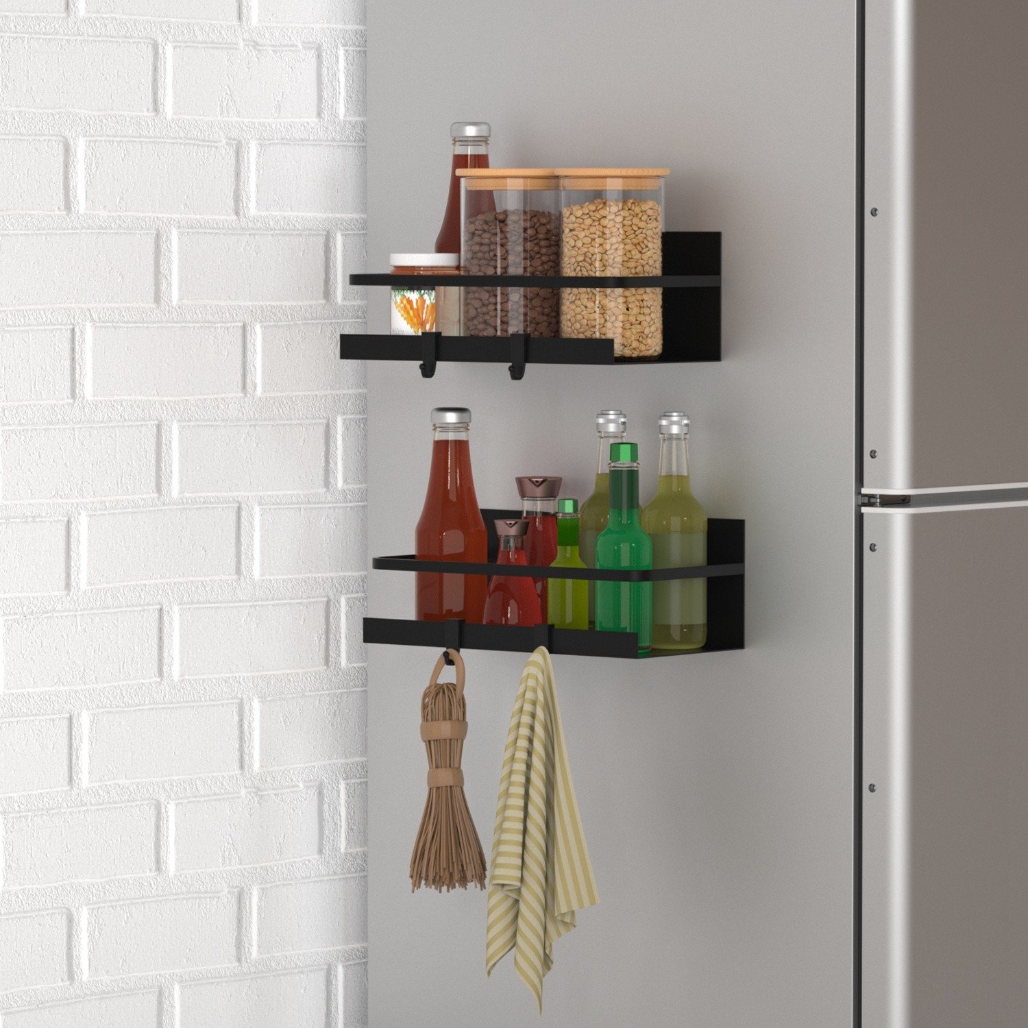 2 Packs Magnetic Spice Holder Rack Organizer Strong Magnetic Seasoning Storage Shelf with 4 Removable Hooks for Refrigerator Microwave