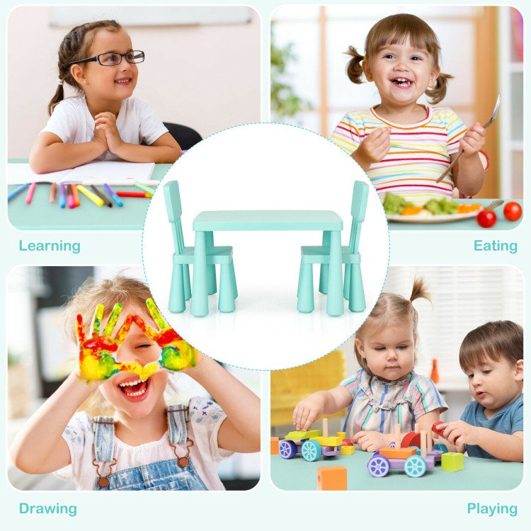 4.Sturdy and Stable Construction: Made of non-toxic and odorless PP material, this kids table and 2 chairs set can be used for a long time and comes with a strong loading capacity of 110 lbs. Meanwhile, this kid's furniture set with ASTM certification grows with your little one who is 1 - 7 years old.