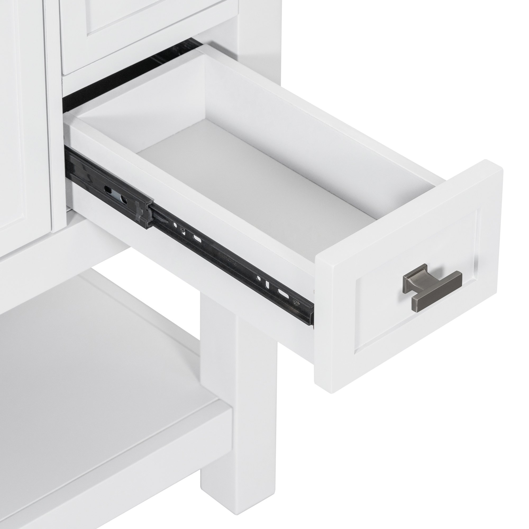 [ Multi-Purpose Cabinet & Concealed Storage ] Are you looking for stylish and functional storage solutions for your bathroom? Our bathroom vanity provide ample space for all your toiletries and bathroom essentials. The combination of the cabinet body and the drawer perfectly stores all kinds of bathroom products and keeps the necessities away from water stains and dust. Soft-close doors and drawer fronts feature a water-resistant paint finish for durability.
