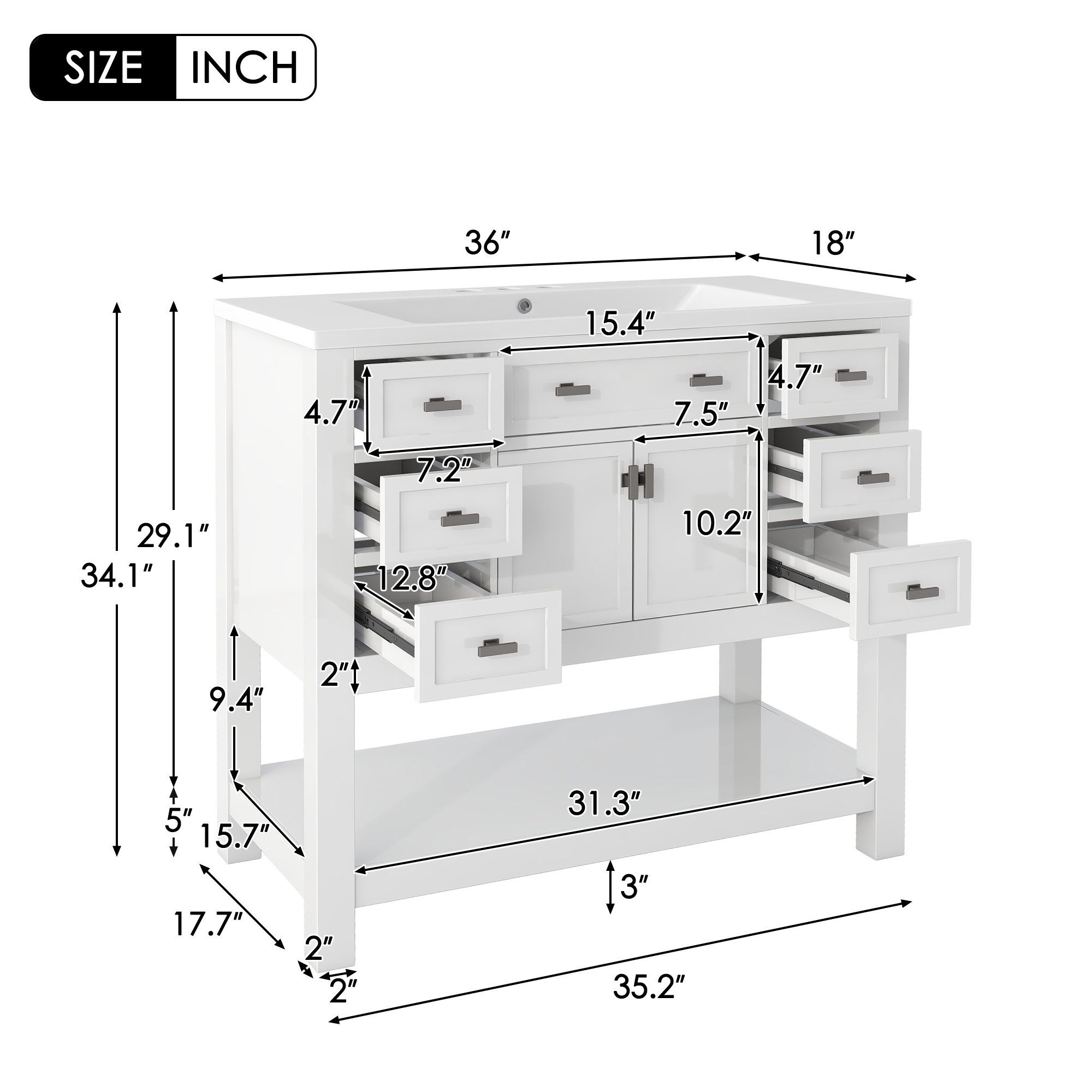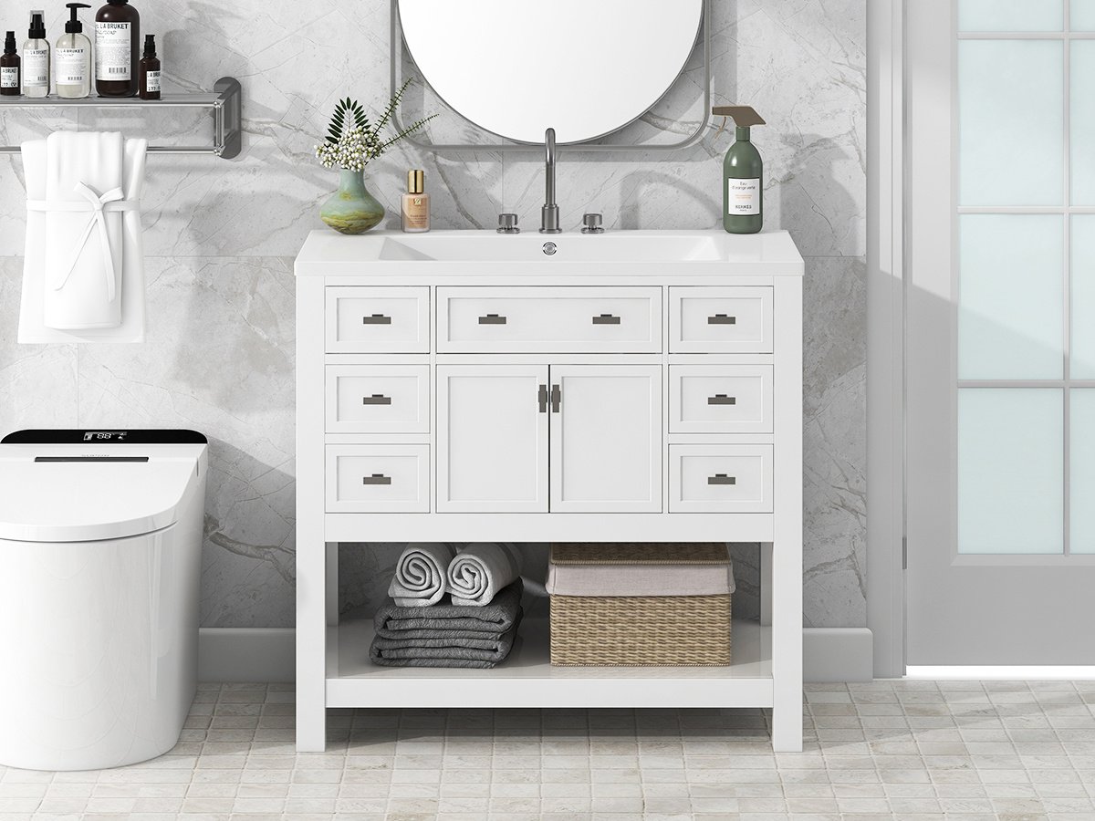Home > 36'' Bathroom Vanity with Top Sink, Modern Bathroom Storage Cabinet with 2 Soft Closing Doors and 6 Drawers, Single Sink Bathroom Vanity