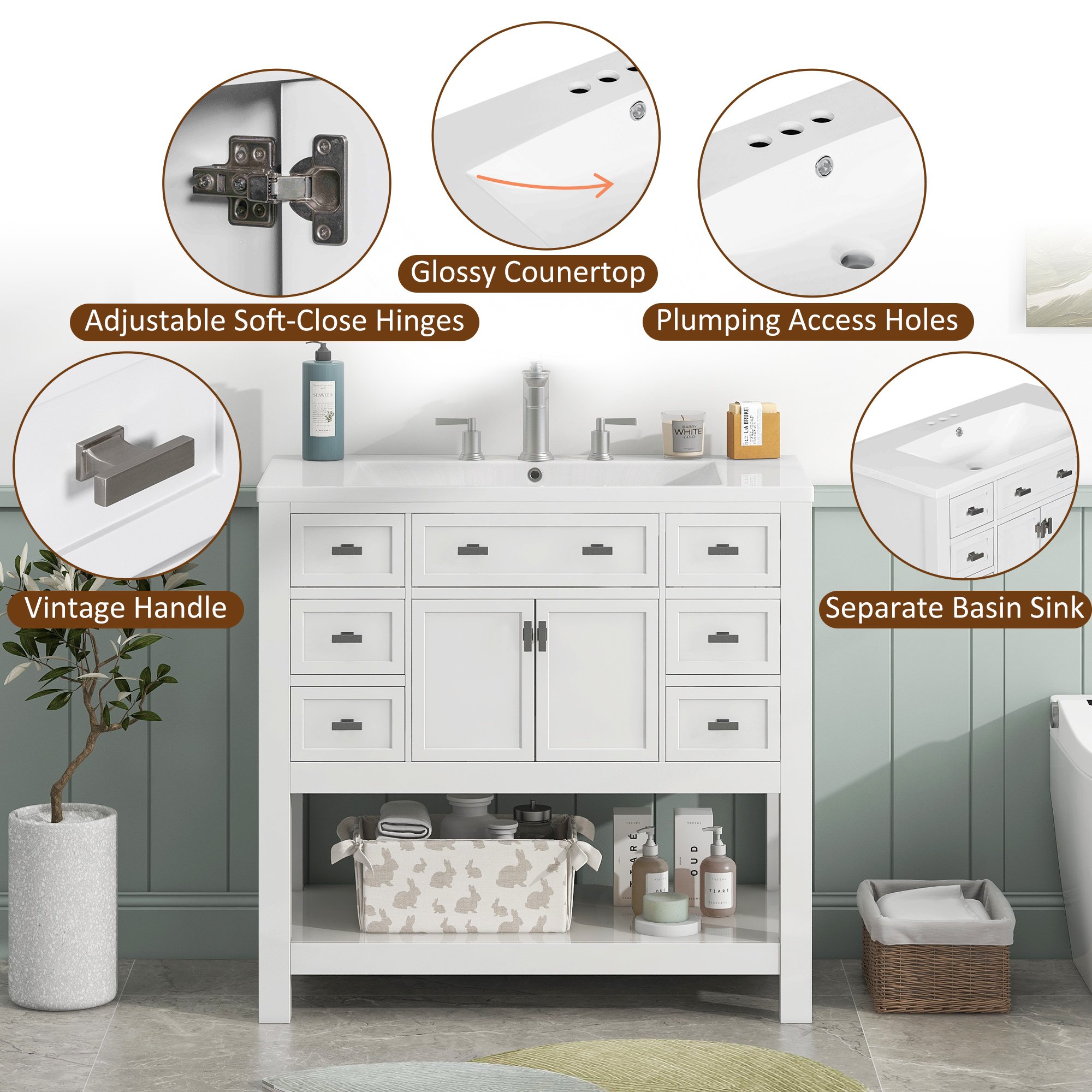 36'' Bathroom Vanity with Top Sink, Modern Bathroom Storage Cabinet with 2 Soft Closing Doors and 6 Drawers, Single Sink Bathroom Vanity