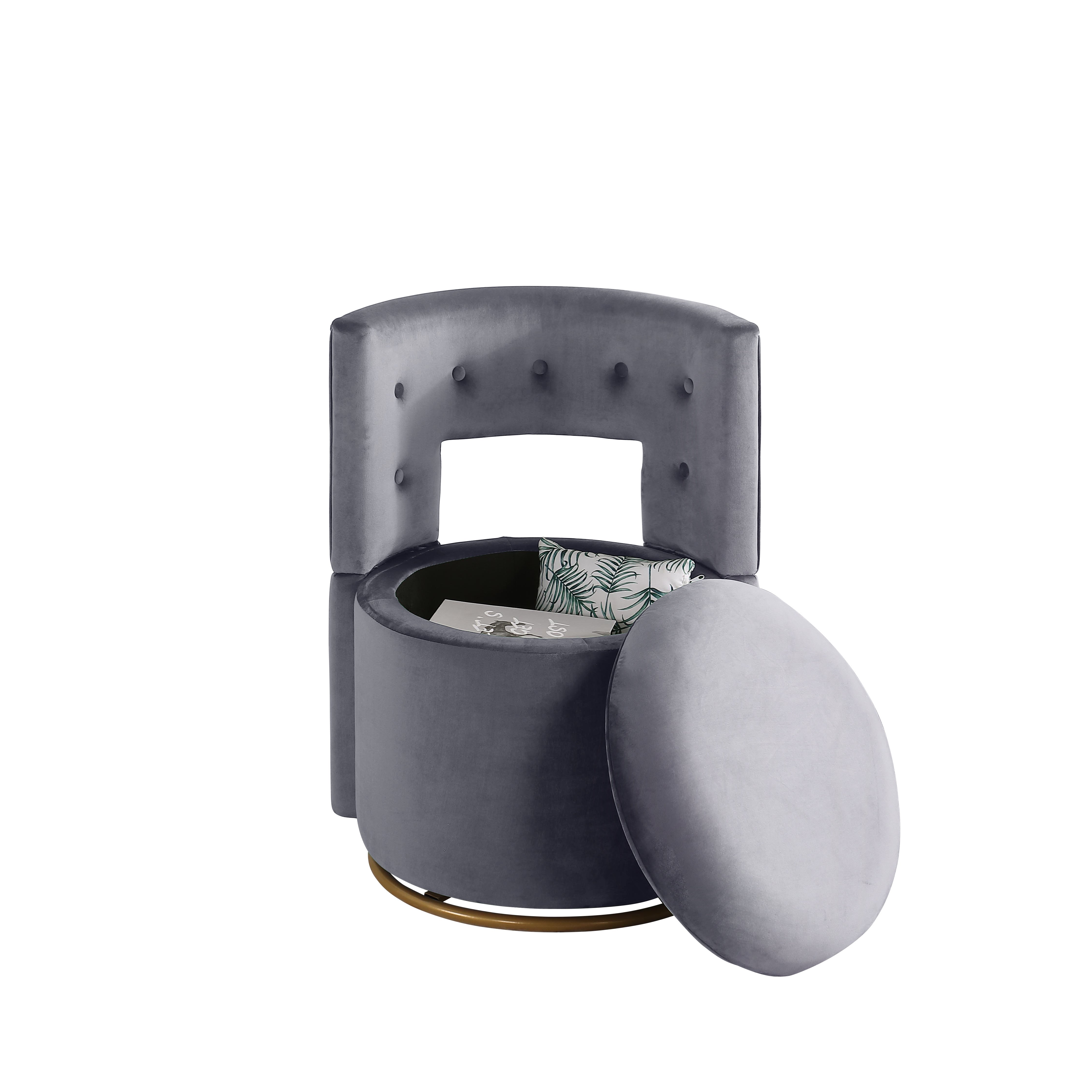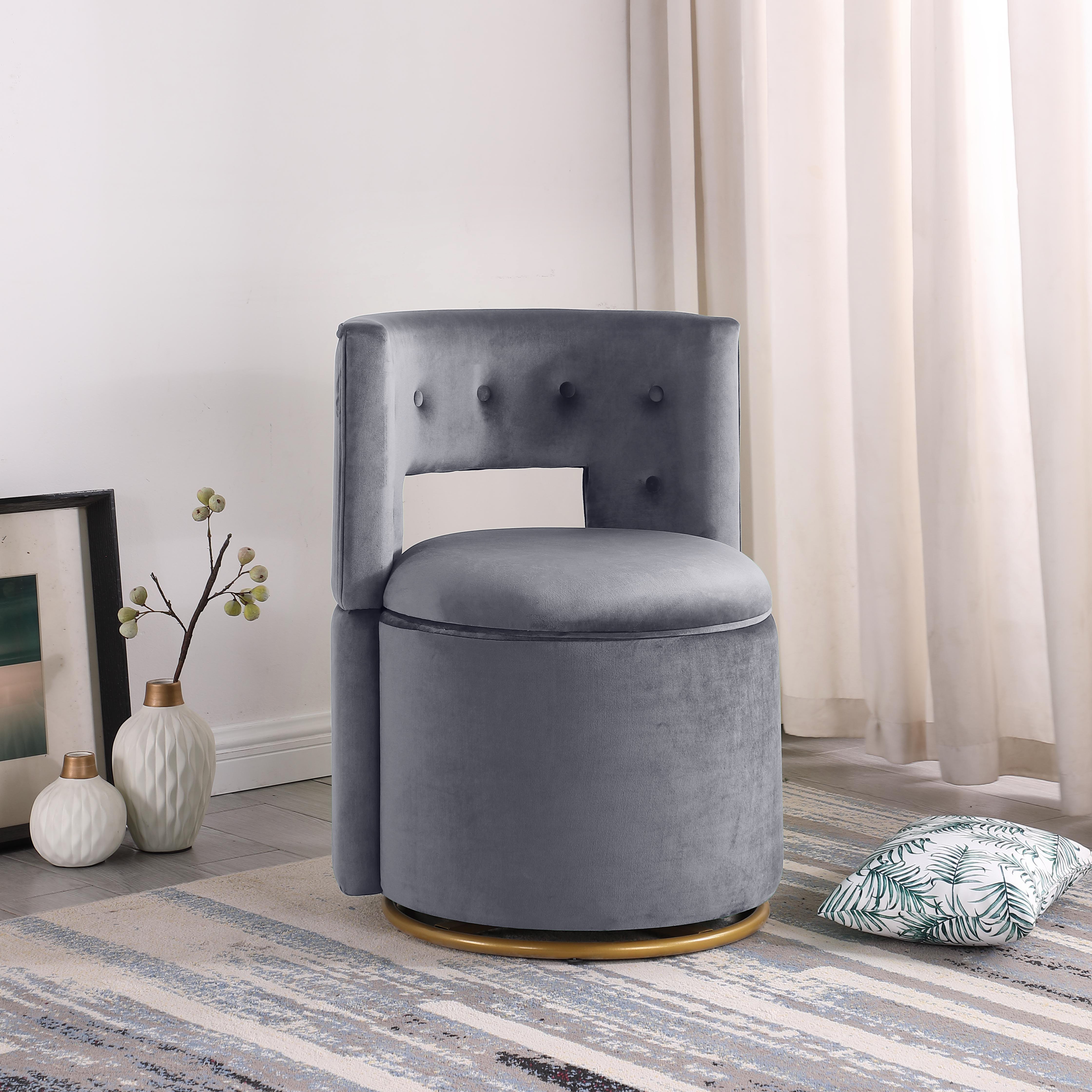 360° Swivel Accent Chair with Storage FunctionVelvet Fabric & Pillow: Velvet fabric is a soft, skin-friendly fabric with a wrap-around backrest. In addition, the seat cushion is filled with high-density foam for long-lasting use and good resilience. Extra pillows added to give strong back support. Swivel Chair: This swivel chair has a 360° swivel base. The elegant curved design and 360° swivel feature make this modern chair a very unique sight in the living room, bedroom, office, nursery. Whimsical Design: Our swivel chair has a whimsical design with a removable cushion that makes use of the swivel chair's very clever space for pillows, magazines, remote controls and other small objects. Sturdy Frame: This swivel chairs for living room is made of solid wood + mdf frame, weight capacity: 220lb.