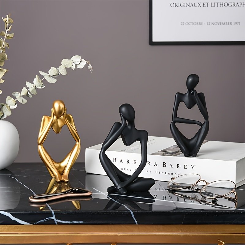 3pcs Abstract Villain Decorative Ornaments; Handmade Resin Handicrafts; Thinker Resin Statue Set