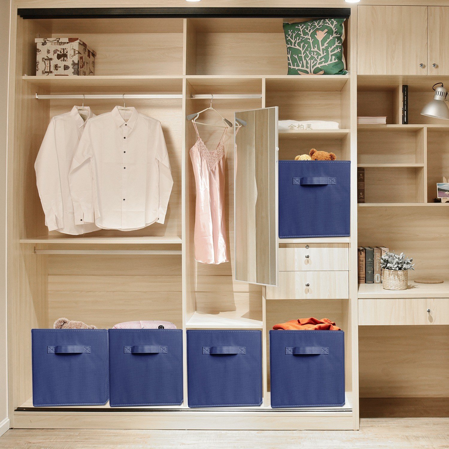 Home > 4 Pack Foldable Storage Cube Bins Cloths Closet Space Organizer Basket Shelves Box