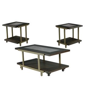 Biony Espresso Wood Dining Set with Tan Fabric Nailhead Chairs