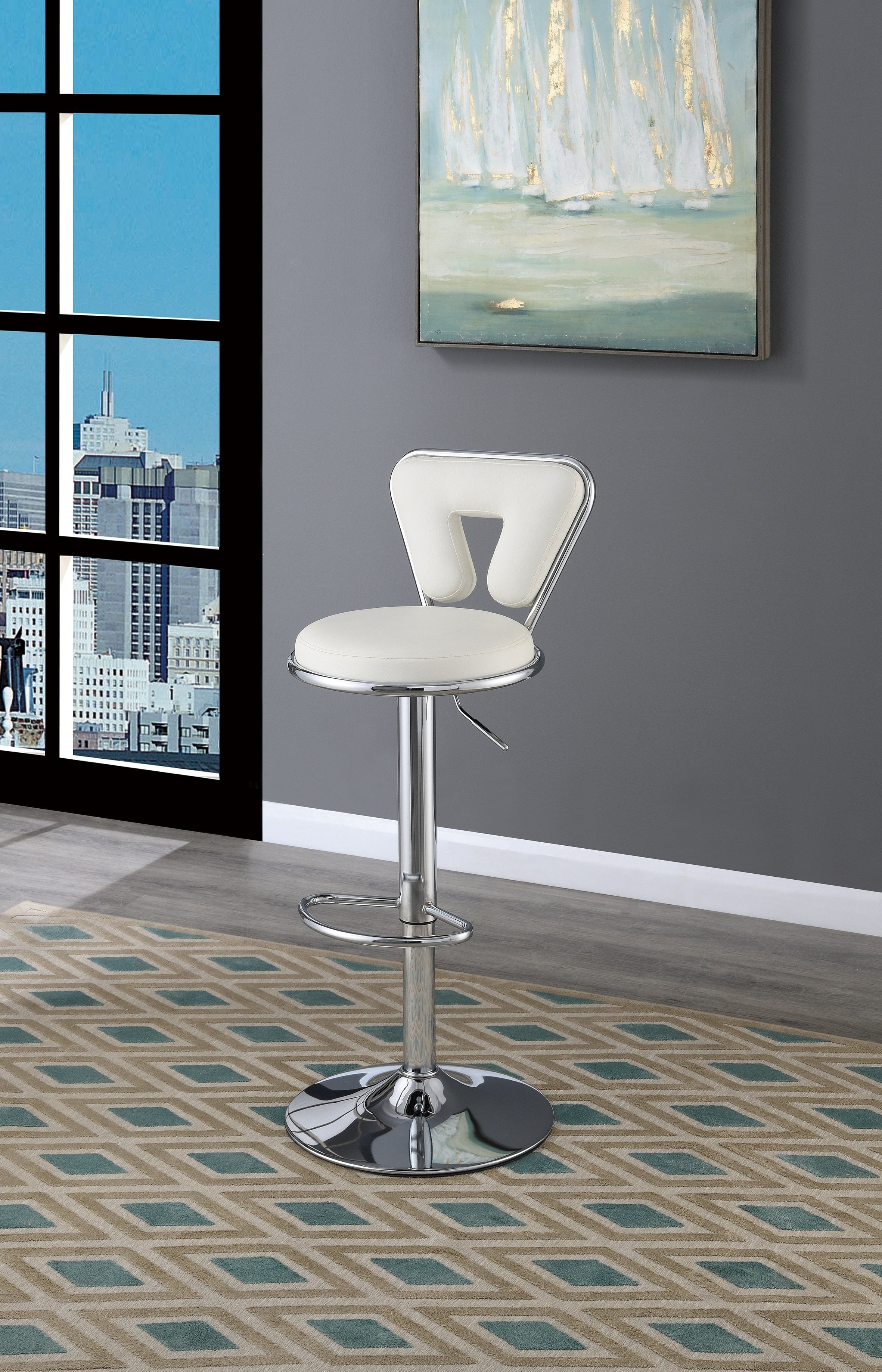 Home > Adjustable Bar stool Gas lift Chair White Faux Leather Chrome Base metal frame Modern Stylish Set of 2 Chairs