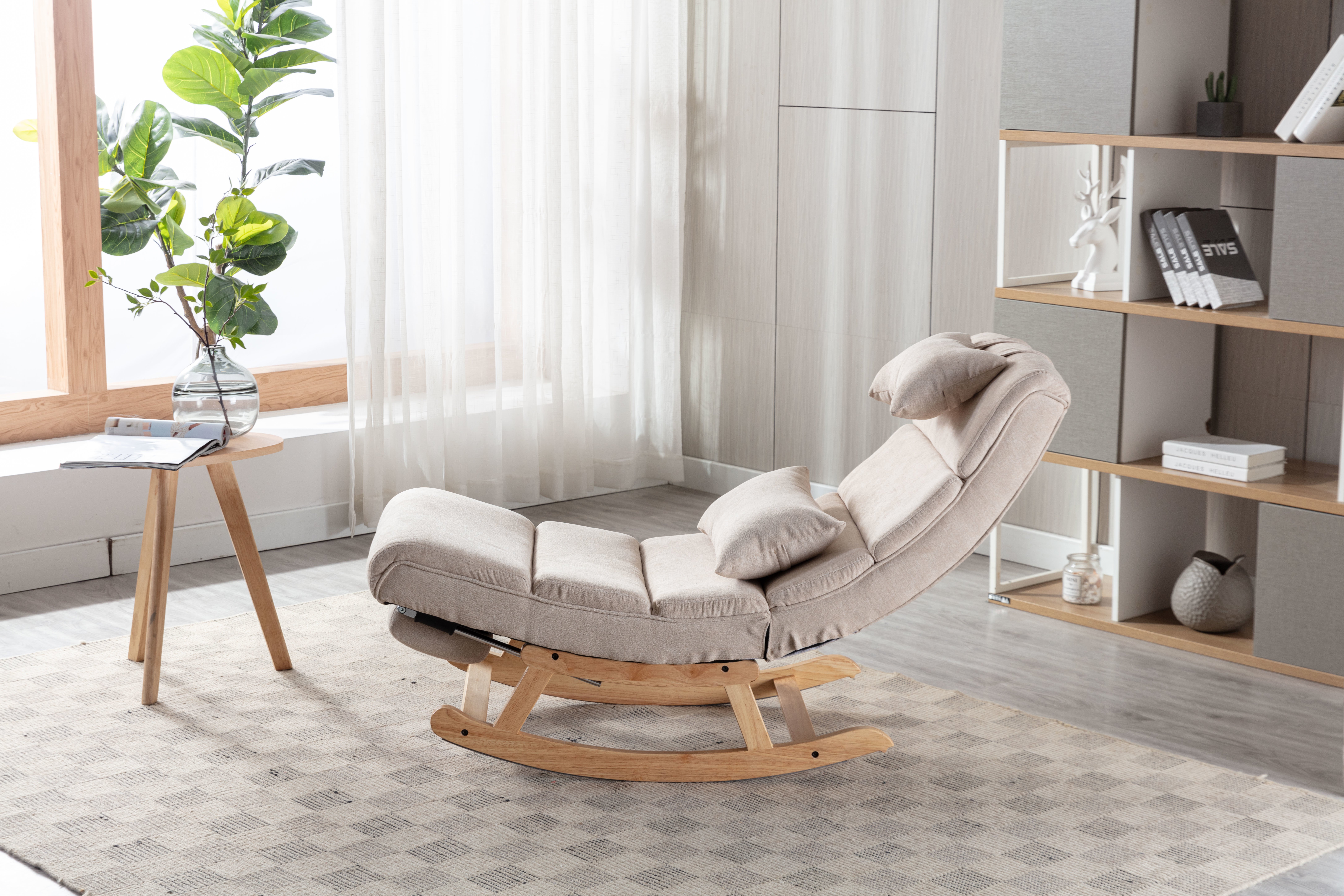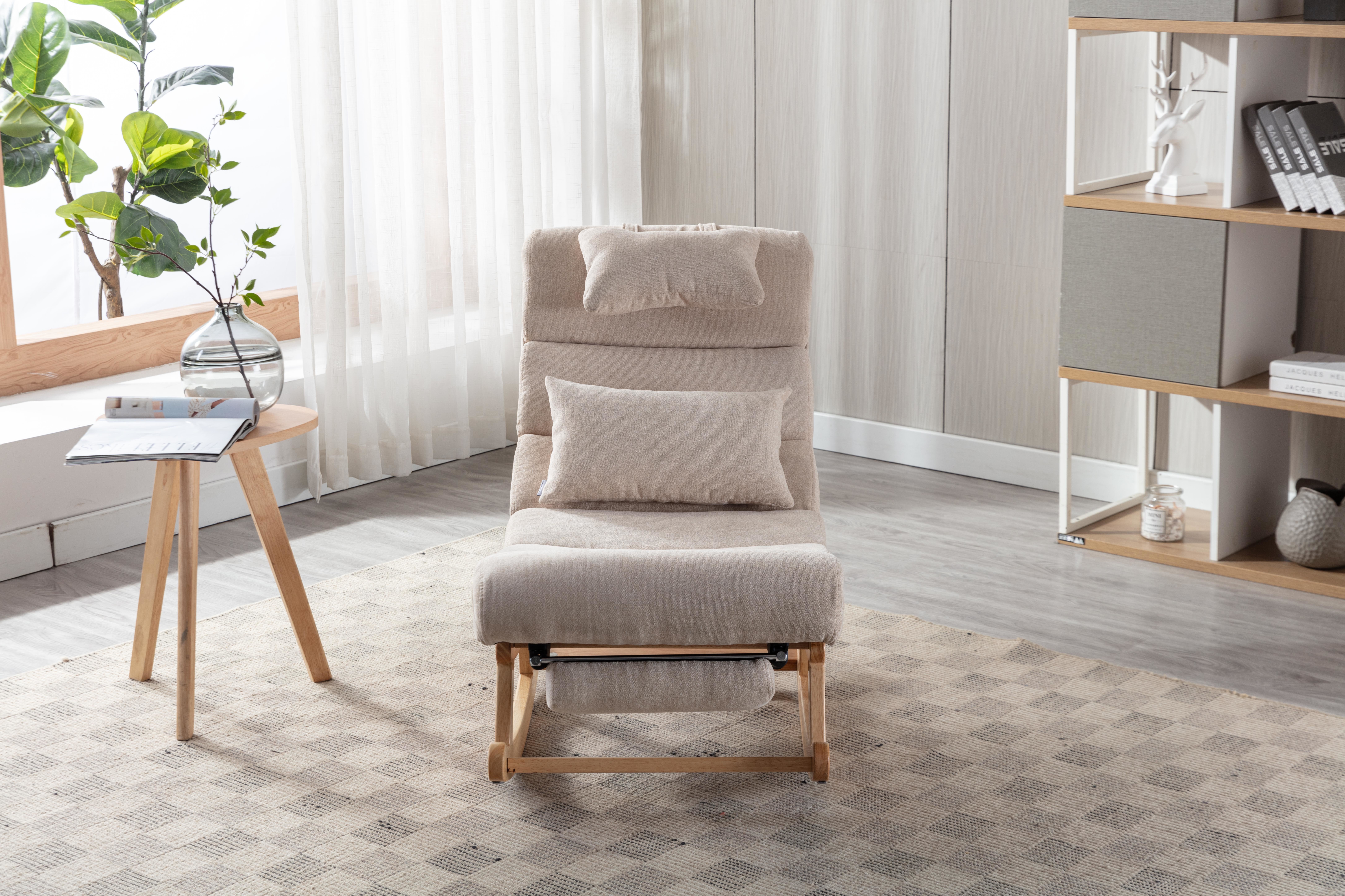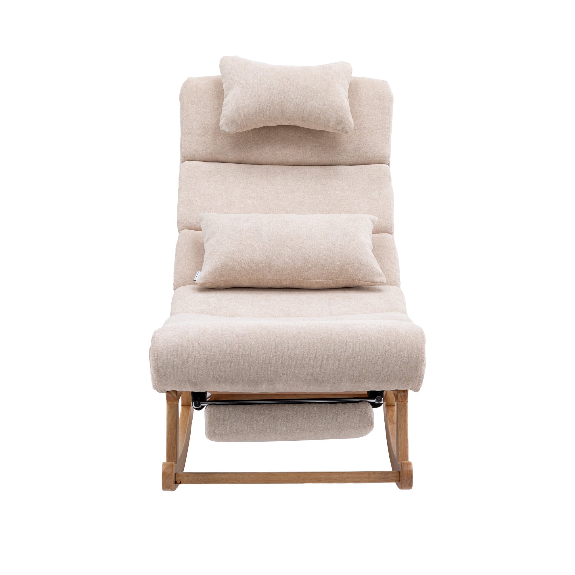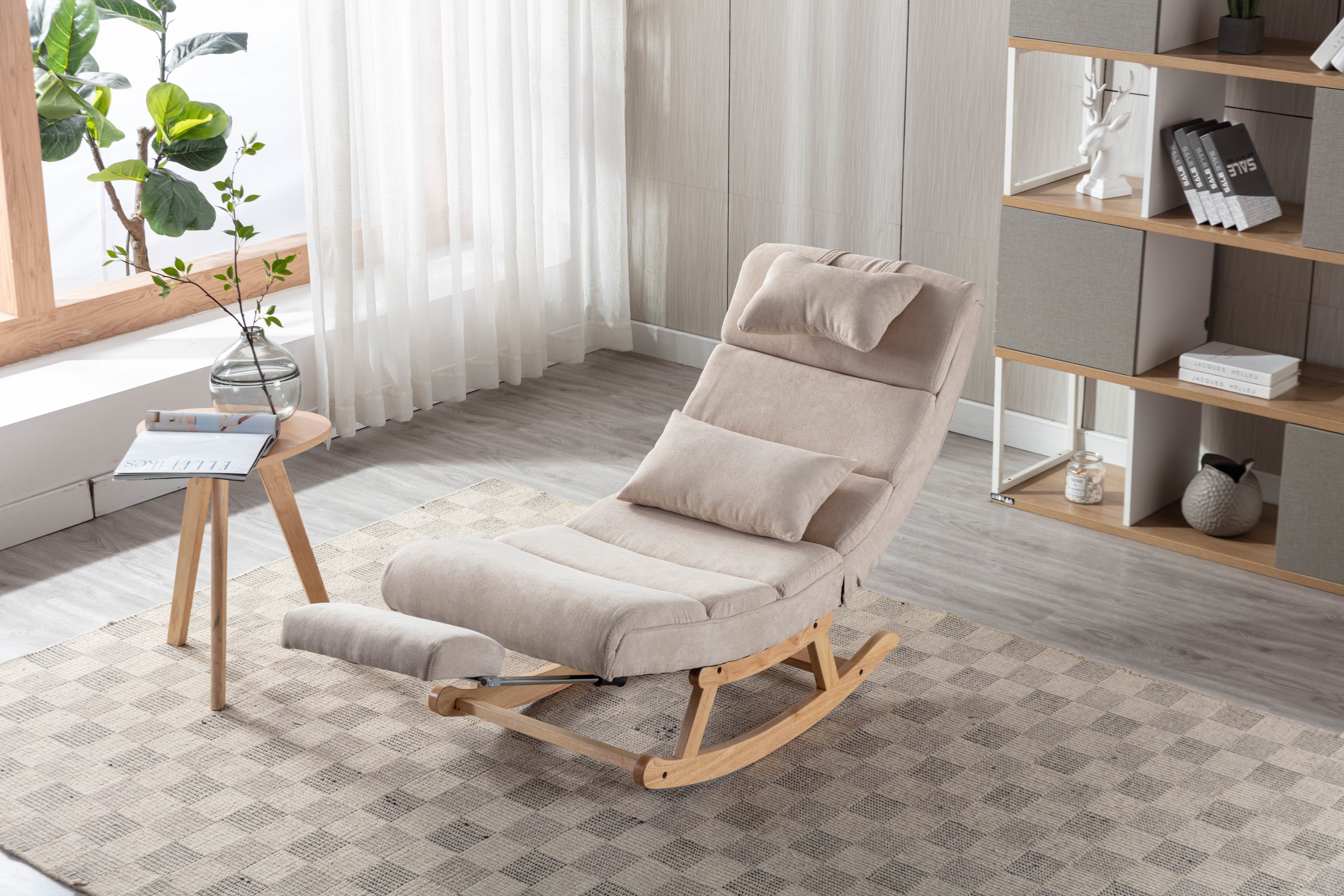 COOLMORE living room Comfortable rocking chair with Footrest/Headrest living room chair Beige