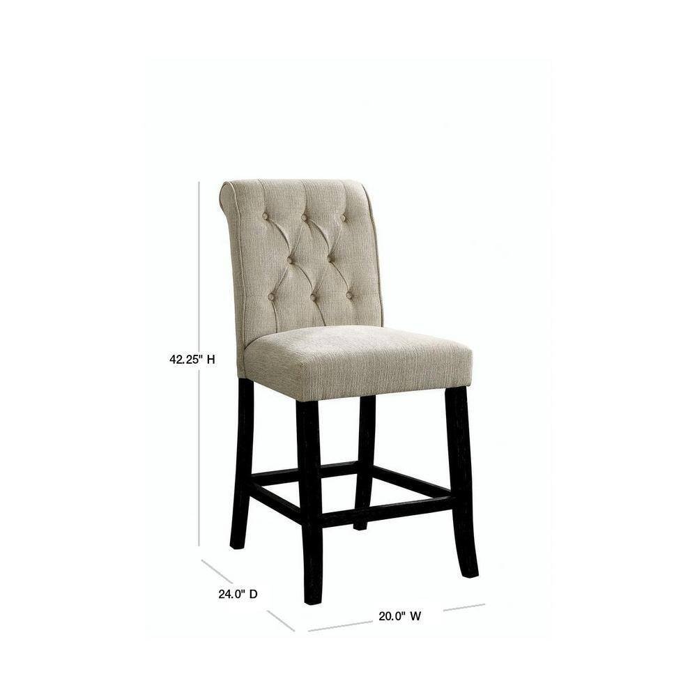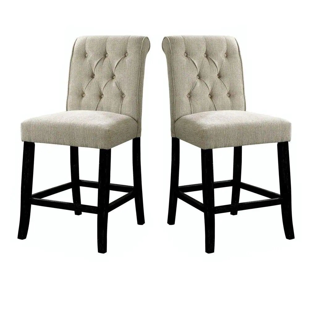 Home > Dining Room Furniture Rustic Style Set of 2 Counter Height Chairs Beige Chenille Fabric Upholstered Tufted Kitchen Breakfast