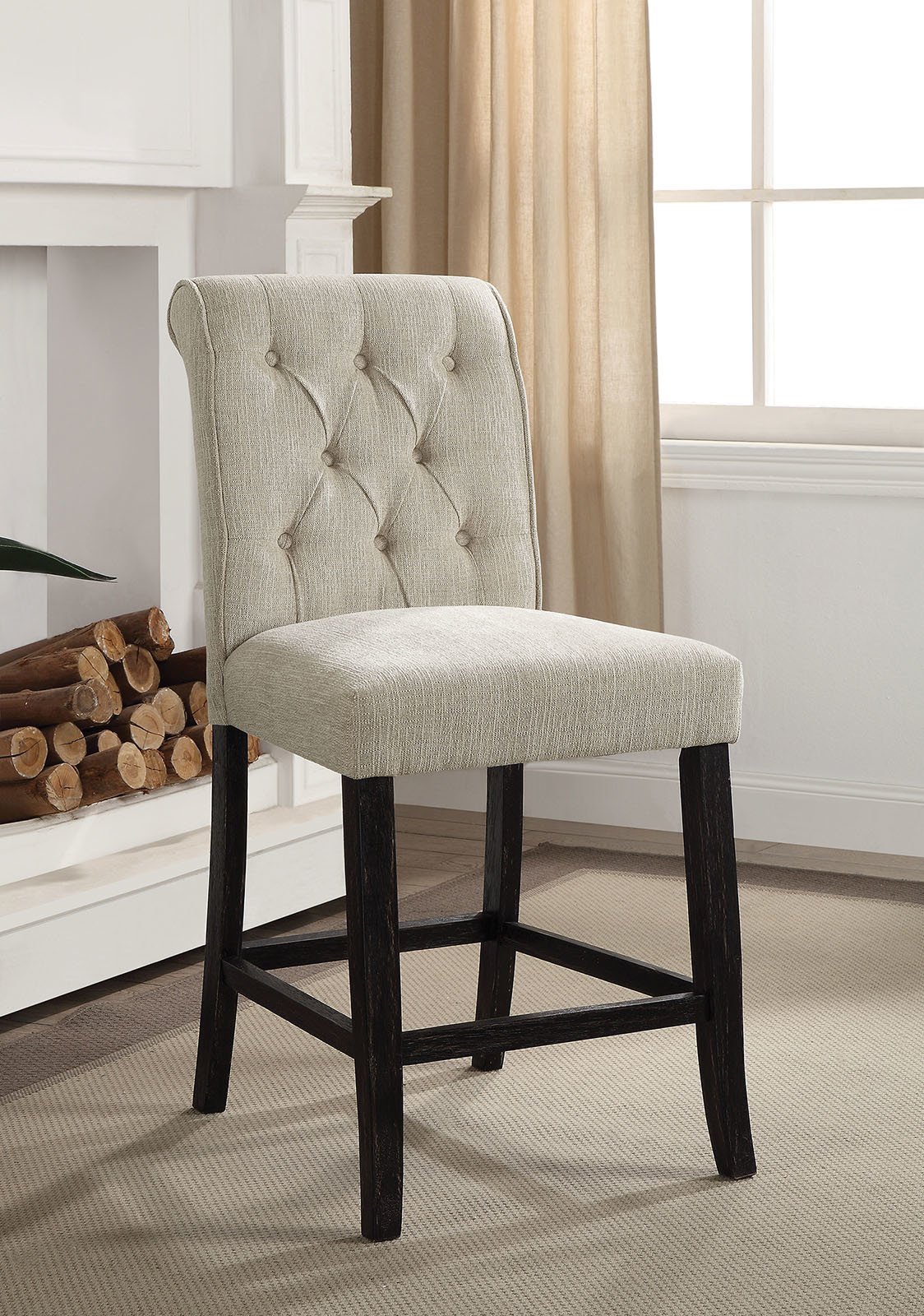 Dining Room Furniture Rustic Style Set of 2 Counter Height Chairs Beige Chenille Fabric Upholstered Tufted Kitchen Breakfast