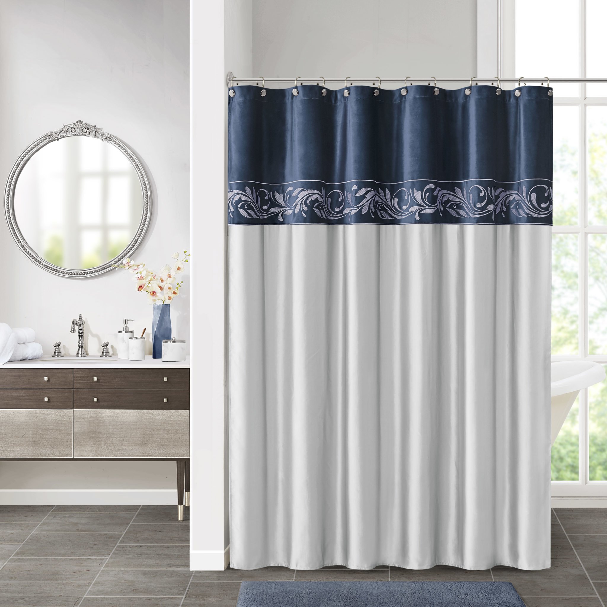 DescriptionInspired by Baroque tapestries and textiles, this embroidered shower curtain features a classic taste from the French arts and fashion of the 17th century. The top material is a rich velvet fabric with sophisticated wisteria and leaf pattern embroidery at the edge. The bottom is made of lightweight satin cloth that has a silk-like luster and an elegant, antique feel. This is a great piece to decorate your luxurious bath area and it pairs perfectly with Croscill's Classics collections.Product DetailsOne Size1 Shower Curtain:72"W x 72"LMaterial100% polyester