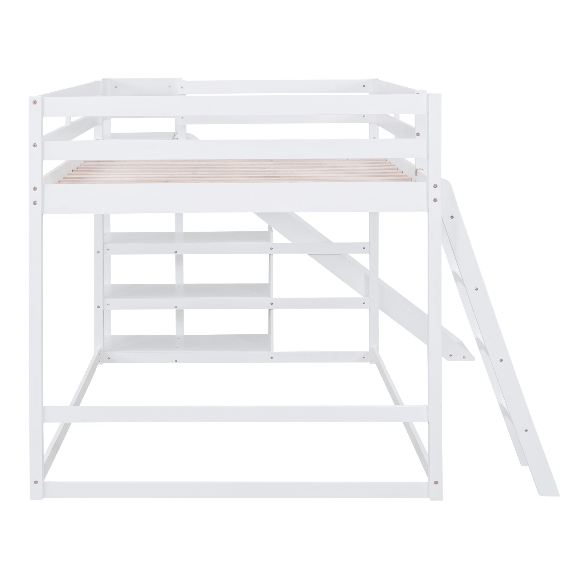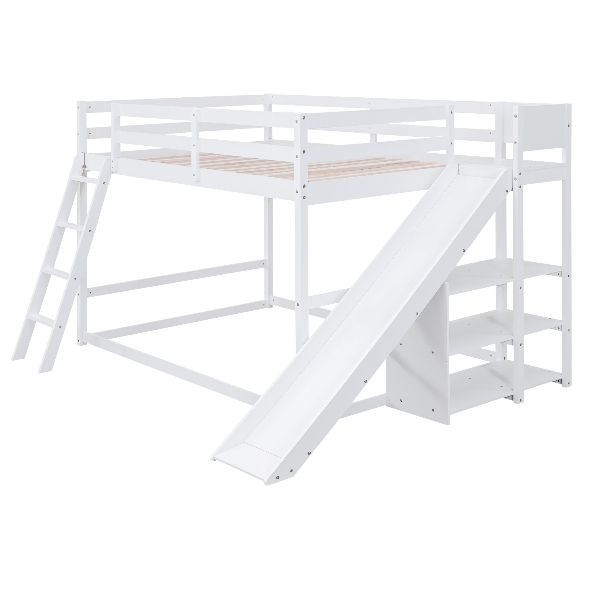 Full over Full Bunk Bed with Ladder, Slide and Shelves
