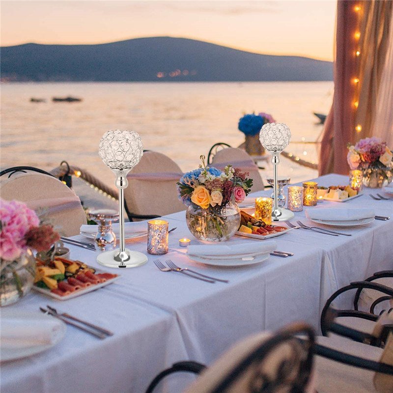 Gold/Silver Crystal Candle Holder Pillar Metal Tealight Candlestick Wedding Table Centerpiece Party Christmas Home Desktop Decor