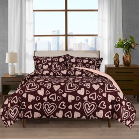 HIG Romantic Love Heart Print Comforter Set, 3 Piece Quilted Down Alternative Comforter with 2 Shams