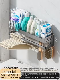 Washing Machine Storage Rack Wall Mounted Without Punching Holes (Option: Gun Grey with Rod-50cm)
