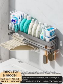 Washing Machine Storage Rack Wall Mounted Without Punching Holes (Option: Gun Grey with Rod-60cm)