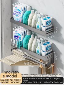 Washing Machine Storage Rack Wall Mounted Without Punching Holes (Option: Gun Grey Double Layer-50cm)