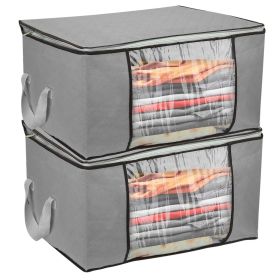 2Pcs Clothes Storage Bag 90L Large Capacity Foldable Closet Organizer w/ Thick Fabric Clear Window Dual-Zipper (Color: Grey)