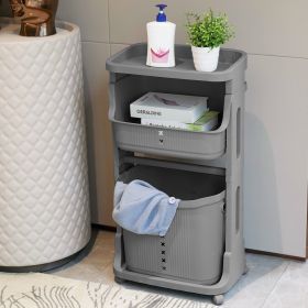 Laundry Basket Plastic Hamper 2-Tier Storage Sorter Hampers with Wheels for Kitchen Bedroom Bathroom Free Standing Storage Baskets Gray (Color: Gray)