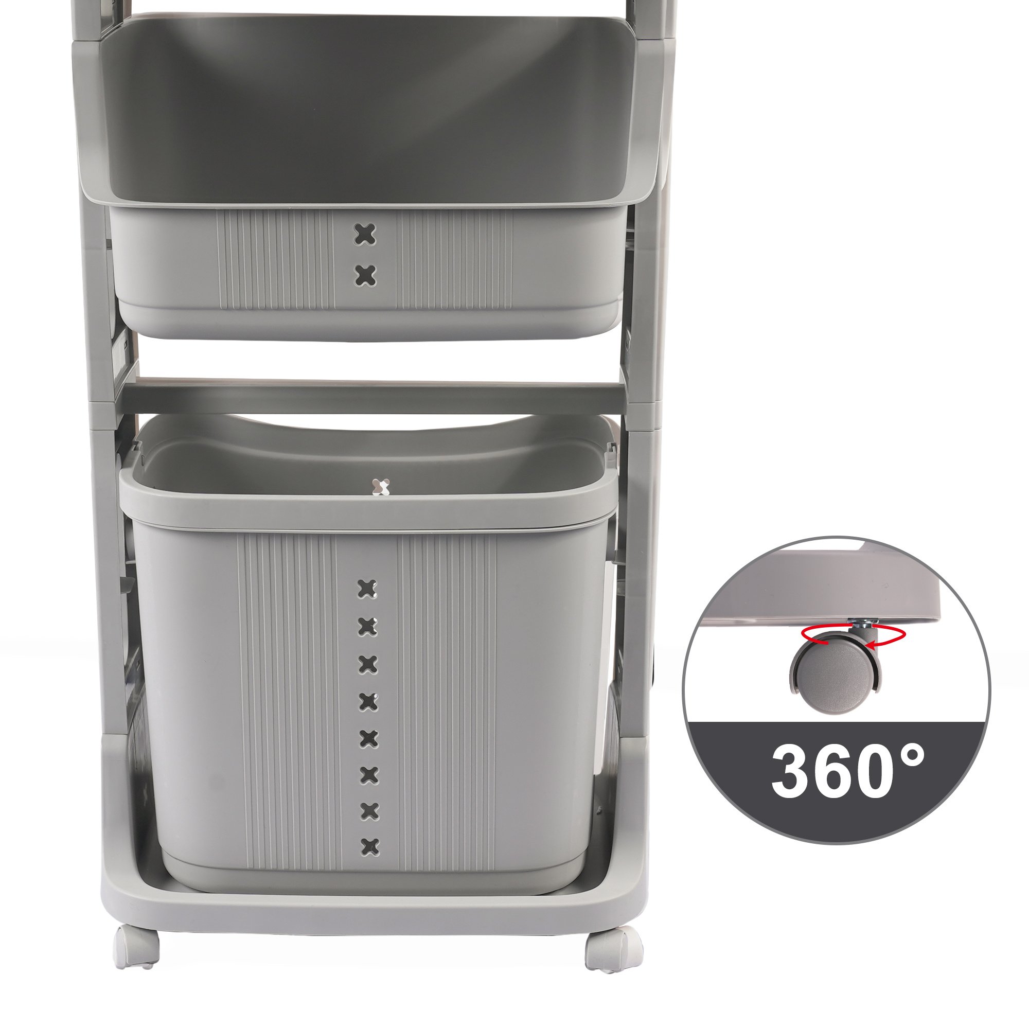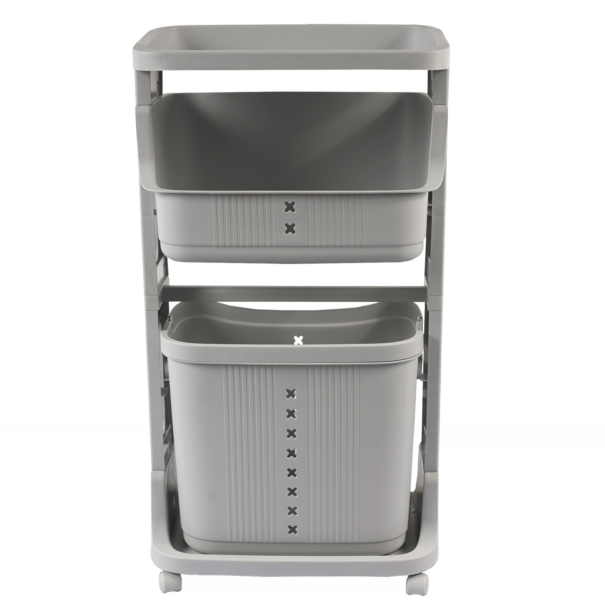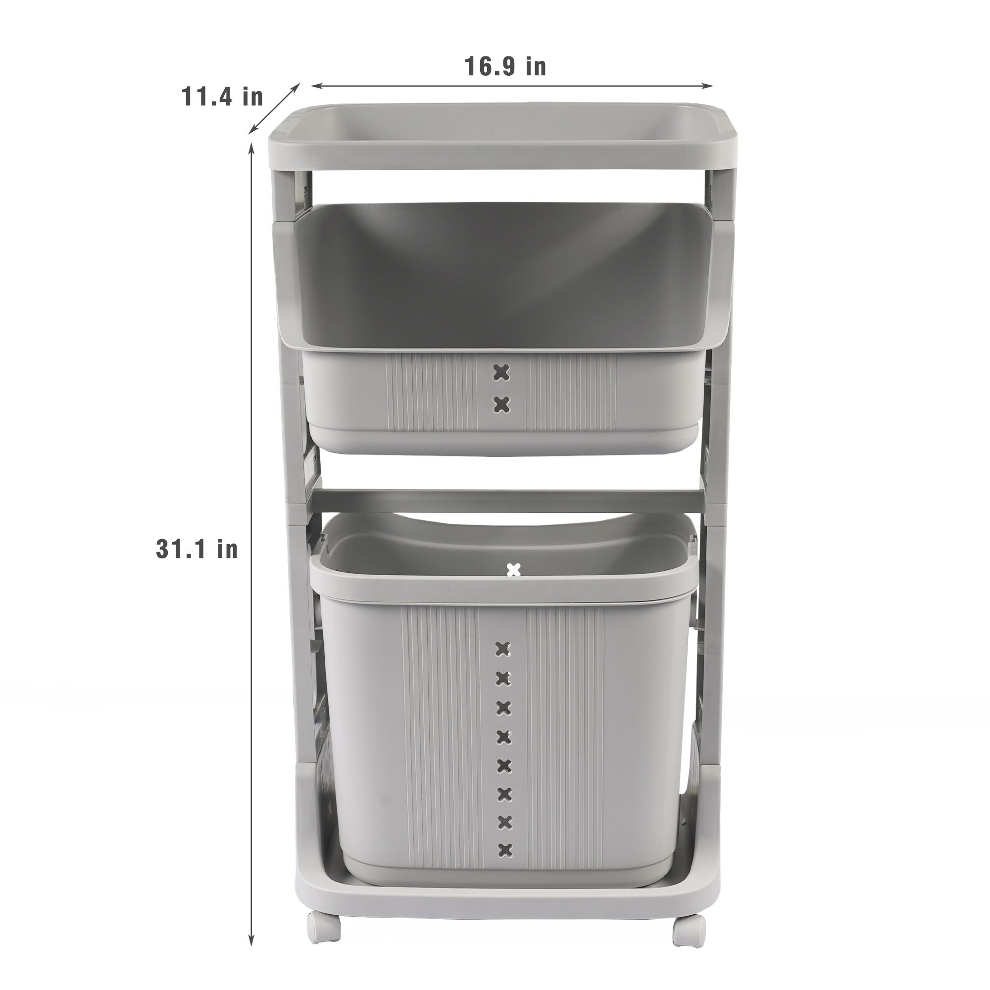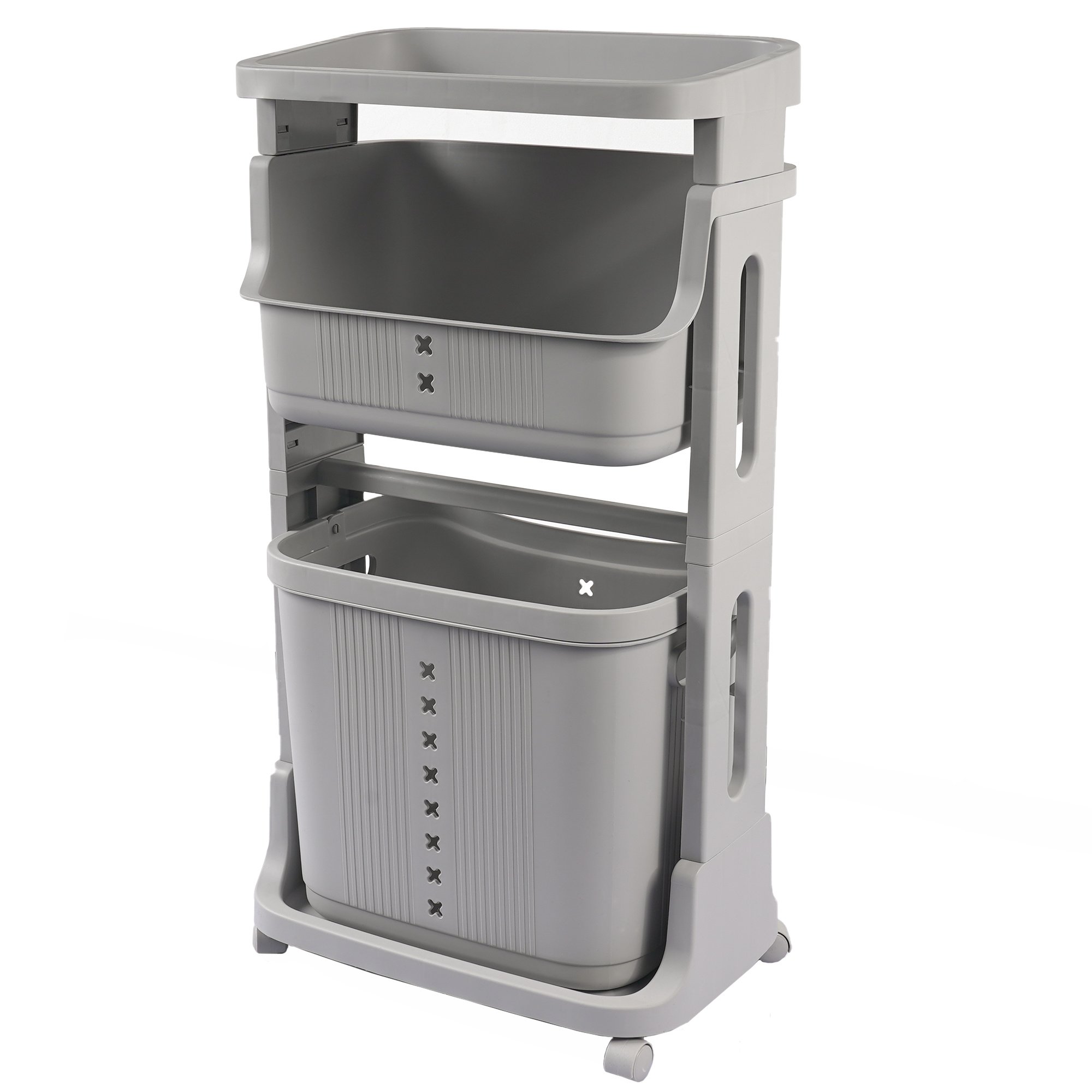 Home > Laundry Basket Plastic Hamper 2-Tier Storage Sorter Hampers with Wheels for Kitchen Bedroom Bathroom Free Standing Storage Baskets Gray