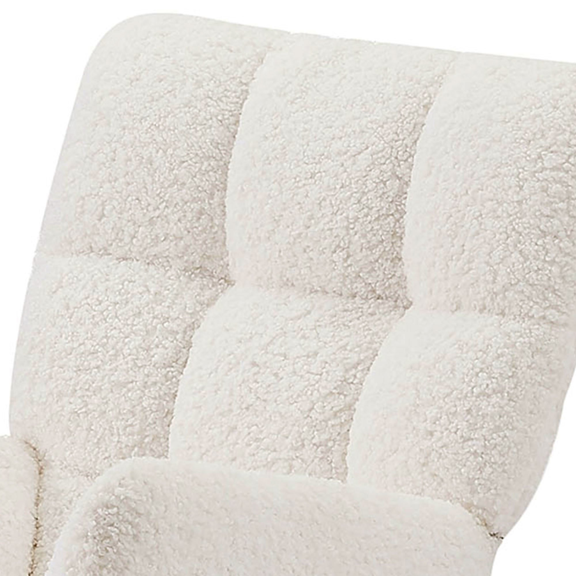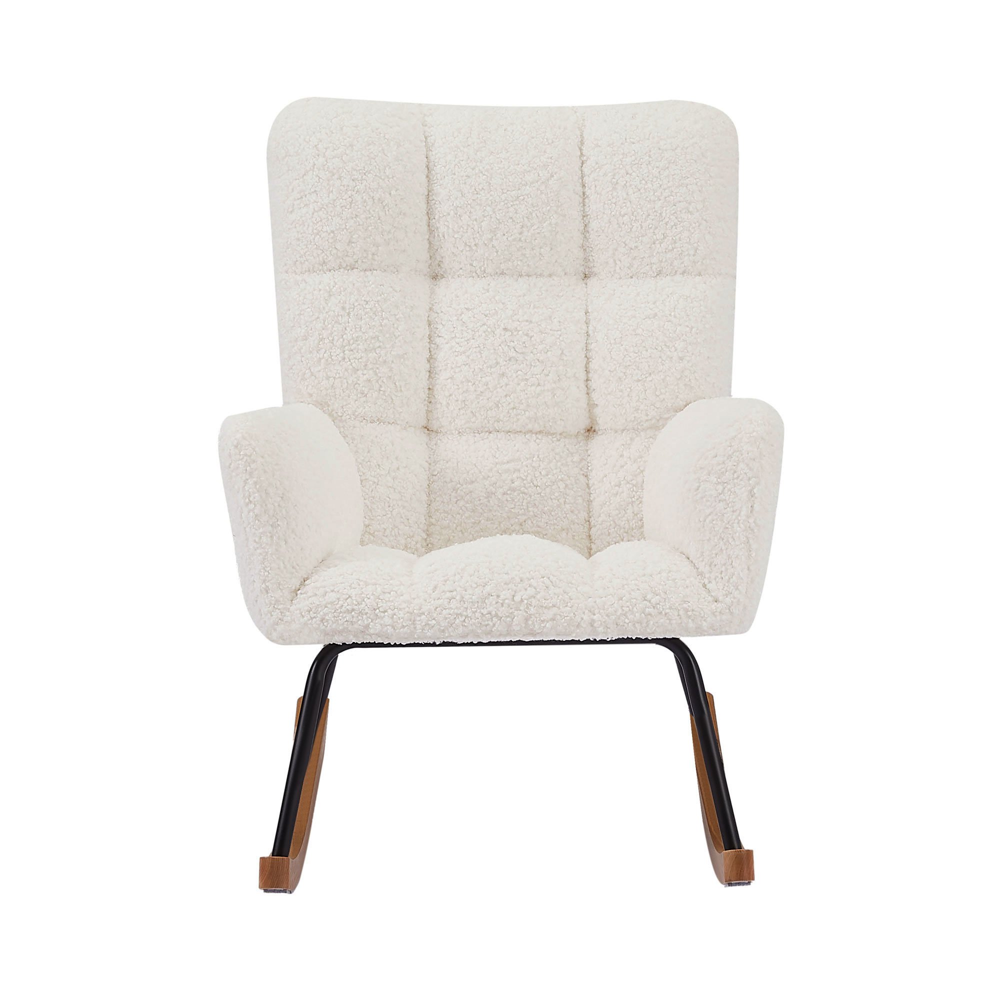 Leisure Sofa Glider Chair, Comfy Upholstered Lounge Chair with High Backrest, for Nursing Baby, ReadERGONOMIC DESIGN - The tilt angle of the backrest of this rocking chair is designed with an ergonomic curve, and the high backrest provides perfect support for the back. Including the armrests of the chair, providing great comfort. Lying on the rocking chair and shaking, we can feel a lot of relaxation.EASY ASSMBLE - Assembling this rocking arm chair is not difficult. This rocking chair can be easily assembled by following the clear instructions.SUPERB QUALITY - The seats are made of soft and skin boucle, which is durable and not easily deformed.STURDY and STABLE - The nursery rocking chair is made of a mix of metal and solid wood, which provides reliable and stable support. During nap time, gently shake the baby to fall asleep.