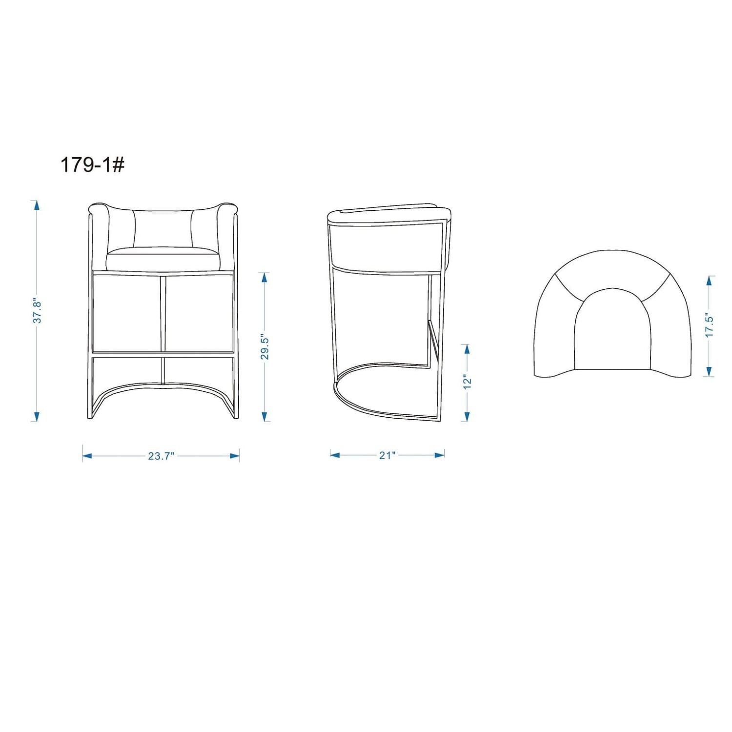 Our cosmopolitan Modernist stool embodies the elegance and pared-down aesthetic of midcentury furnishings. Amply padded for comfort; the upholstered seat is supported by an open metal frame that echoes its clean; geometric lines.Mid-Century Modern Barstool with Backseat Perfect for Bar and Kitchen Use. Measures: 23.7 in. Length; 37.8 in. Height; 21 in. Depth.Frame Made of Durable Metal with Geometric Design. Built-In Seat Cushion Upholstered in Faux Leather with High Density Foam Filled Padding.Semi Circle Open Design with Tight Back Finish. Includes Footrest BaseSeat Height: 29.5" Delivered to you Fully Assembled! No Assembly Required!
