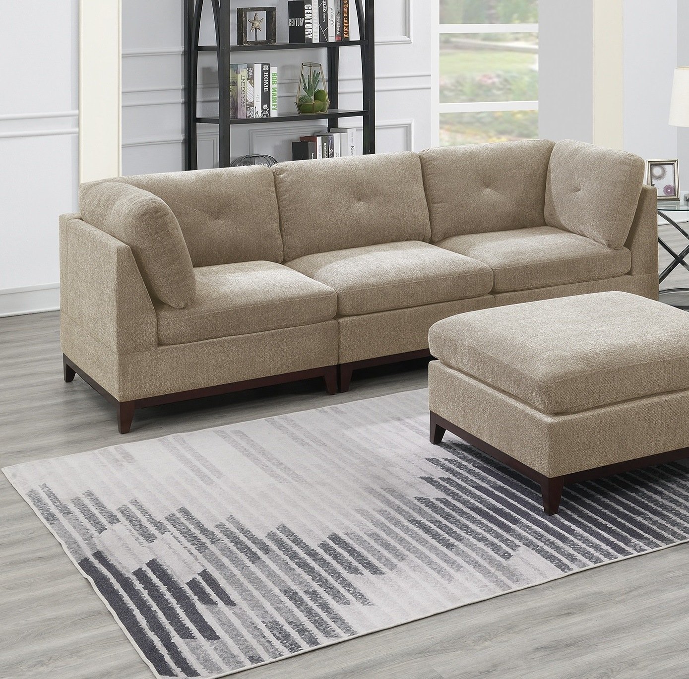 A classic design that is both simple, yet timeless. Bringing a feeling of soft comfort without having to compromise on style. It comes with Armless Chair, (Optional Corner Wedge and cocktail ottoman), you can create a set that fit your exact need. Allow this piece that comes in light camel, bring the most optimal comfort to you and your guests.