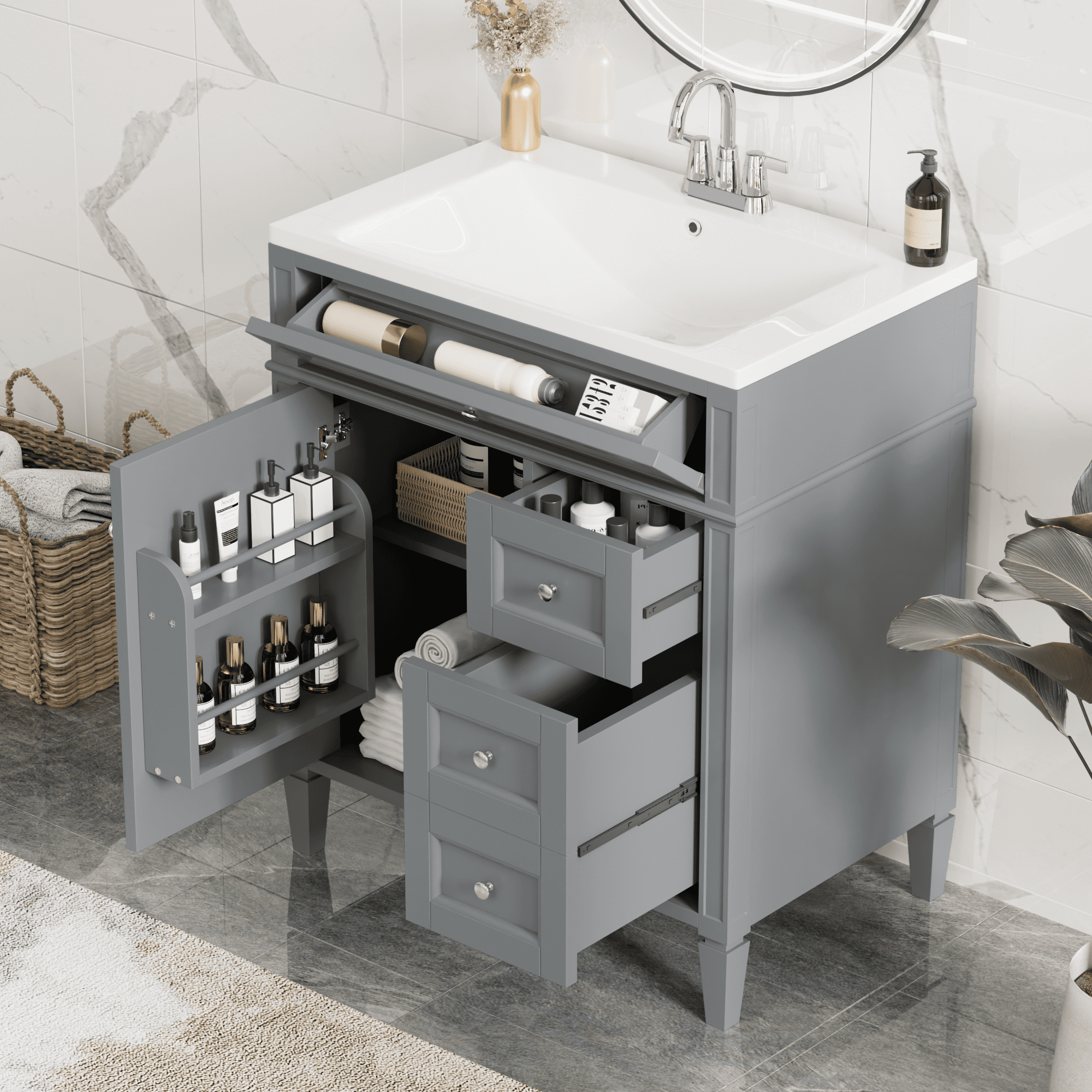 30'' Bathroom Vanity with Top Sink, Modern Bathroom Storage Cabinet with 2 Drawers and a Tip-out Drawer, Single Sink Bathroom Vanity