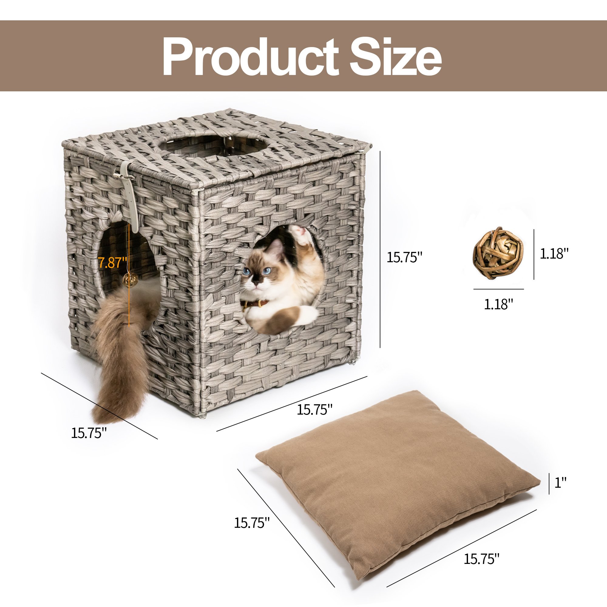 It is hand-woven and minimalist in design. The cat house is absolutely strong and durable; multiple cats can play at the same time; even if it's used by a destructive puppy; there's no problem. Suitable for all kinds of house cats and small dogs; rabbits; etc.Product Dimensions