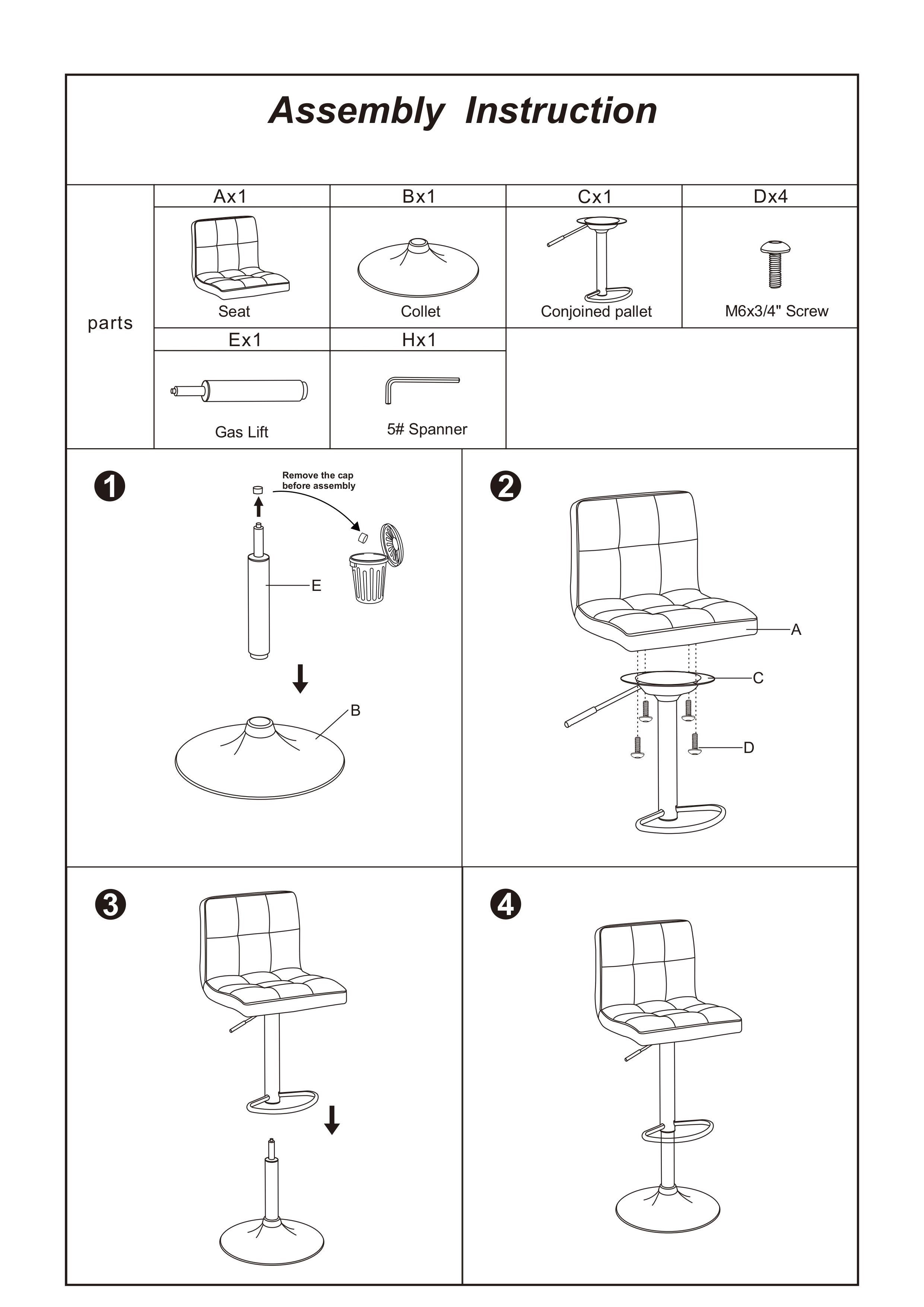 2x Counter Height Chairs / Adjustable Stools :- 17" x 19" x 37 ~ 44"H; Back Height:12"