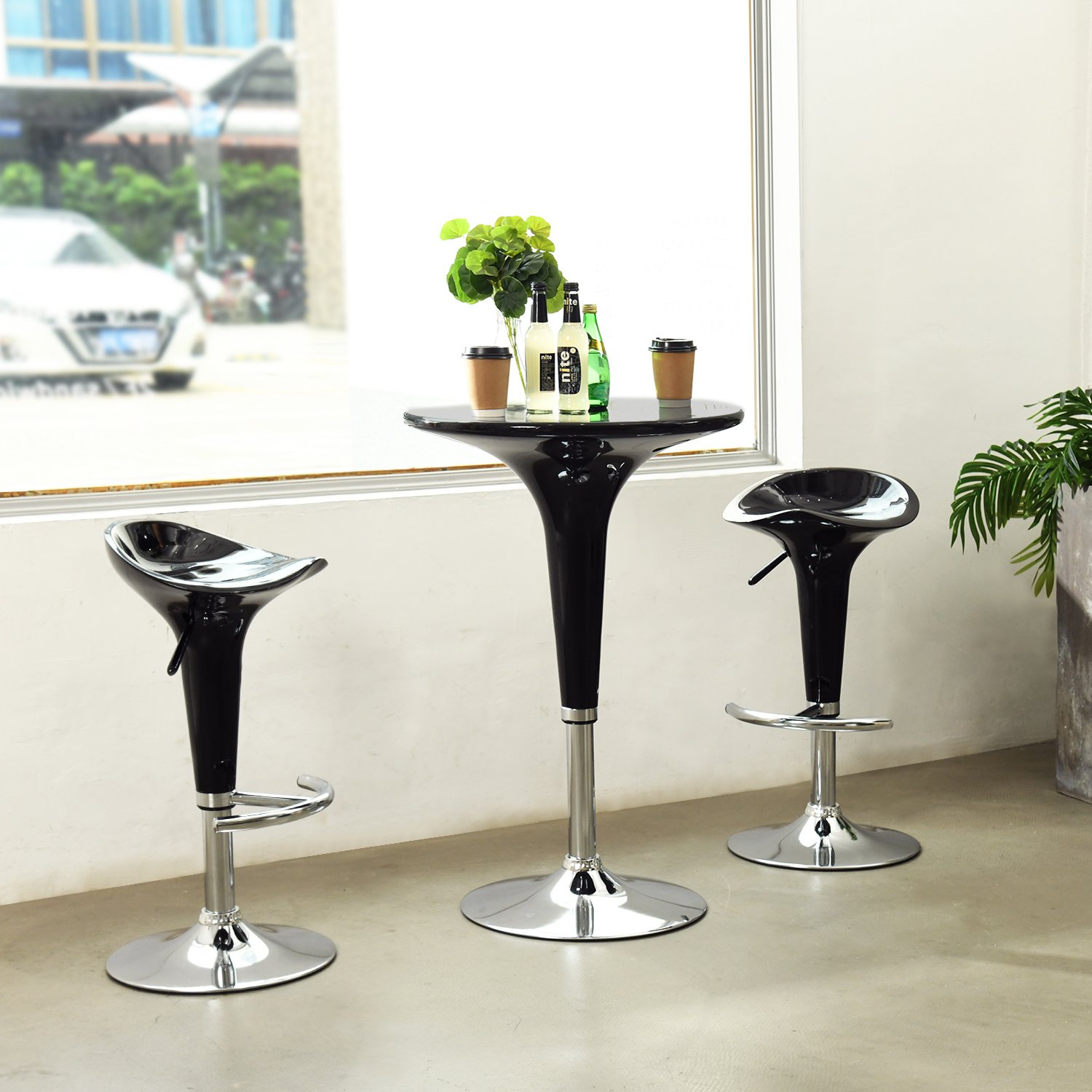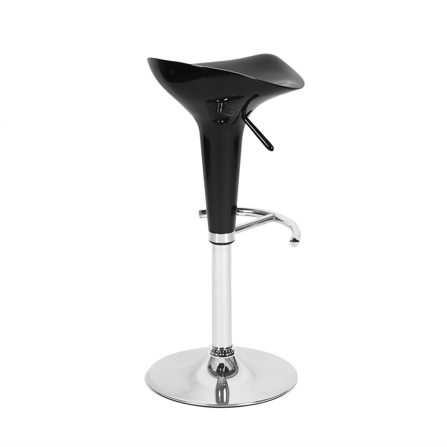 Shake things up and create a fashion modern feel in your home, set of 2 bar stools. The glossy colors to match any decor, base and footrest are made from chrome plated steel, which is easy to clean. A rubber ring lines the perimeter of the underside of the base to protect your floors from scratching. Safe to use on hardwood and tile. Adjustable height function and low back would be great at the kitchen whether island or pub height dining table. Swivel function hlep your conversation with your friends easily. 2 barstools are included.