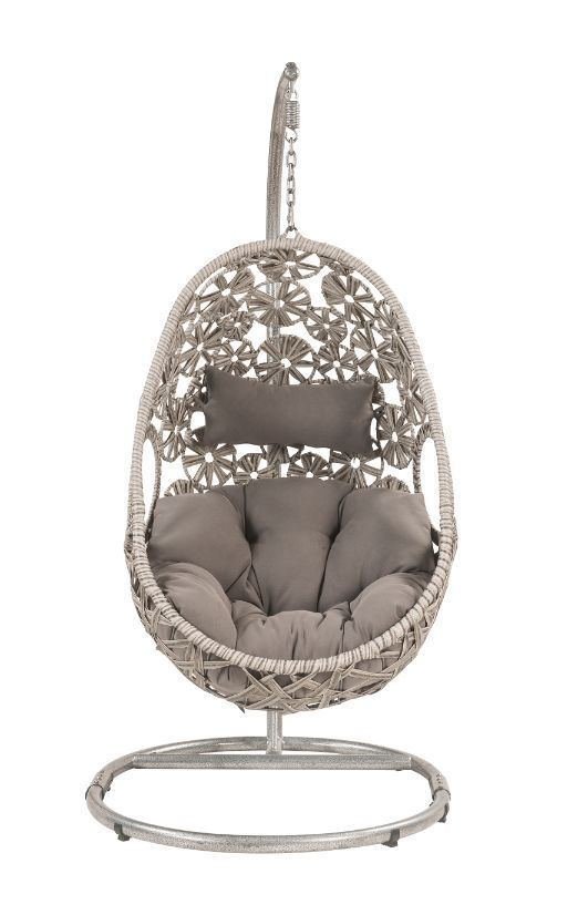 Sigar Patio Hanging Chair with Stand; Light Gray Fabric & Wicker Sigar Patio Hanging Chair with Stand; Light Gray Fabric & Wicker Sigar Patio Hanging Chair with Stand; Light Gray Fabric & Wicker Sigar Patio Hanging Chair with Stand; Light Gray Fabric & Wicker Sigar Patio Hanging Chair with Stand; Light Gray Fabric & Wicker