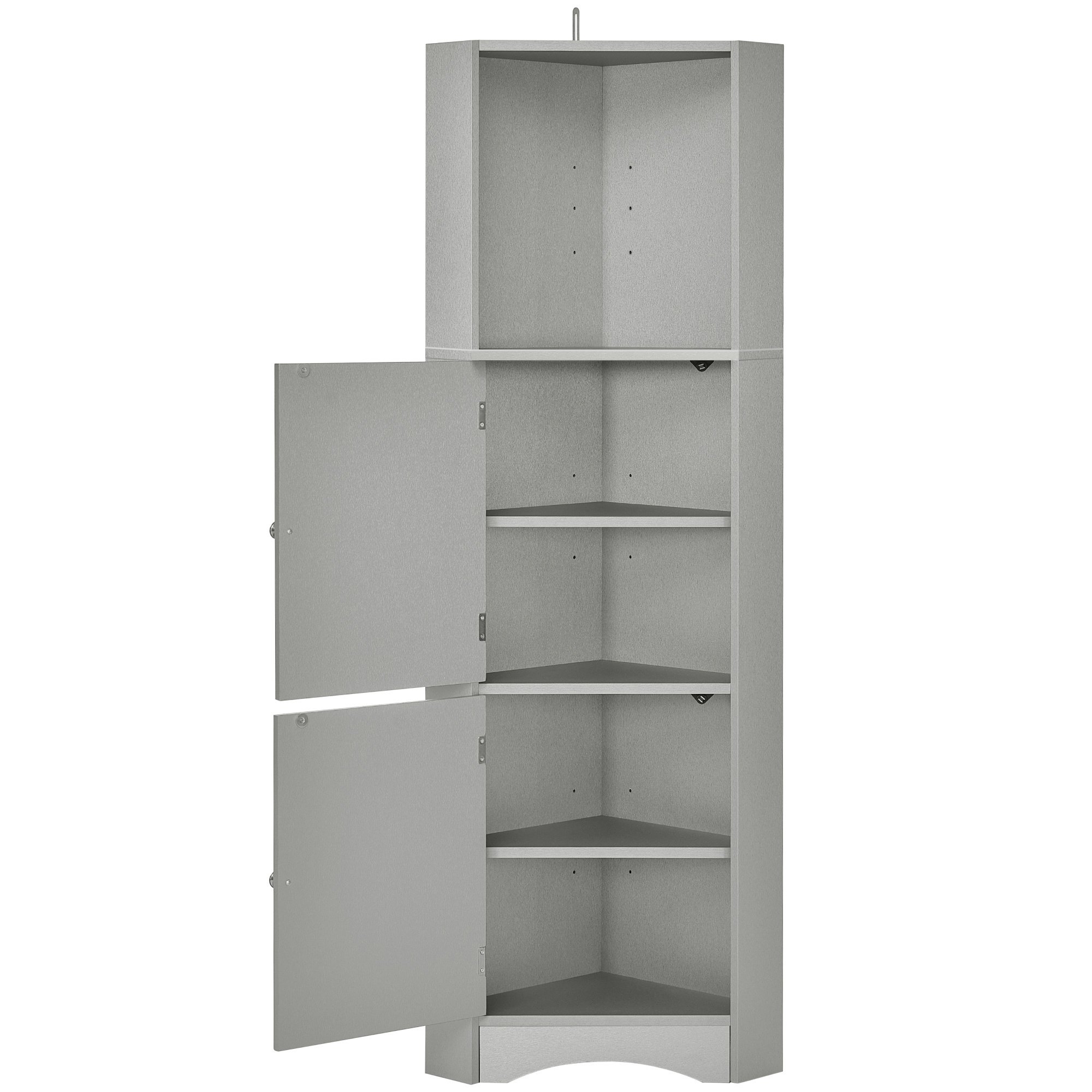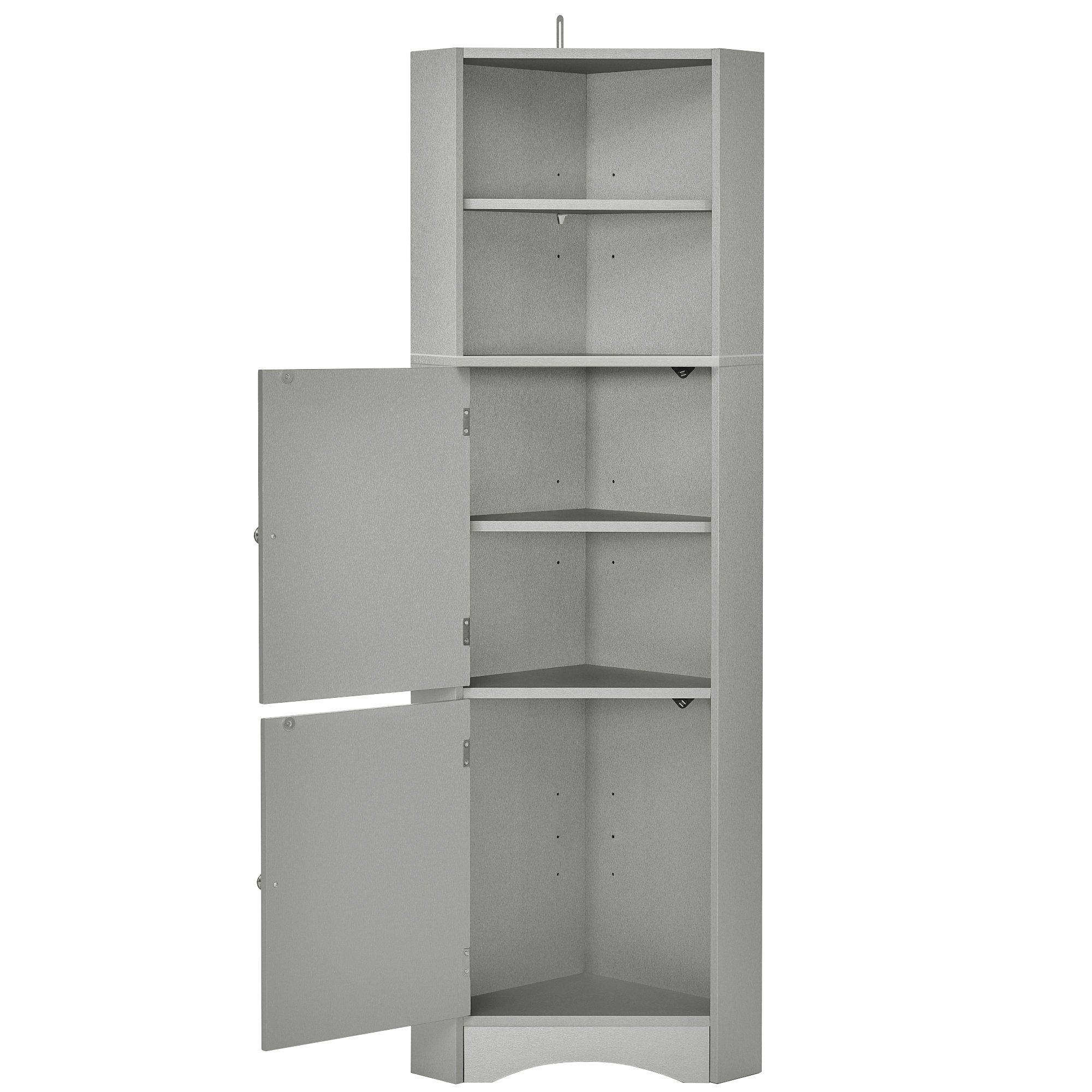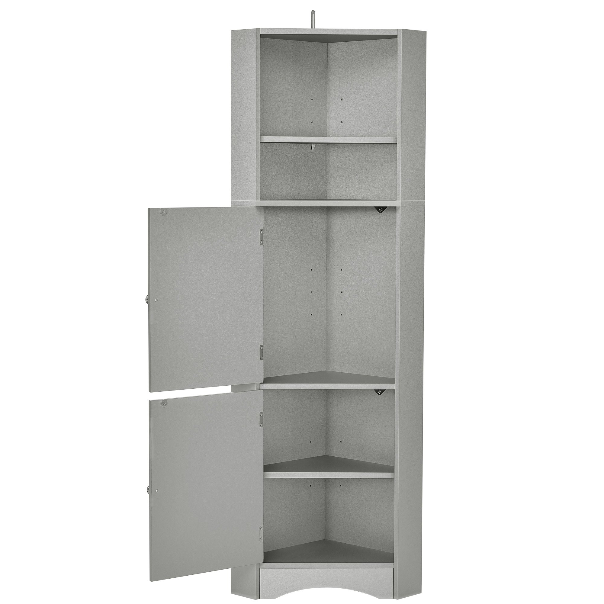 Tall Bathroom Corner Cabinet, Freestanding Storage Cabinet with Doors and Adjustable Shelves, MDF Board, Gray