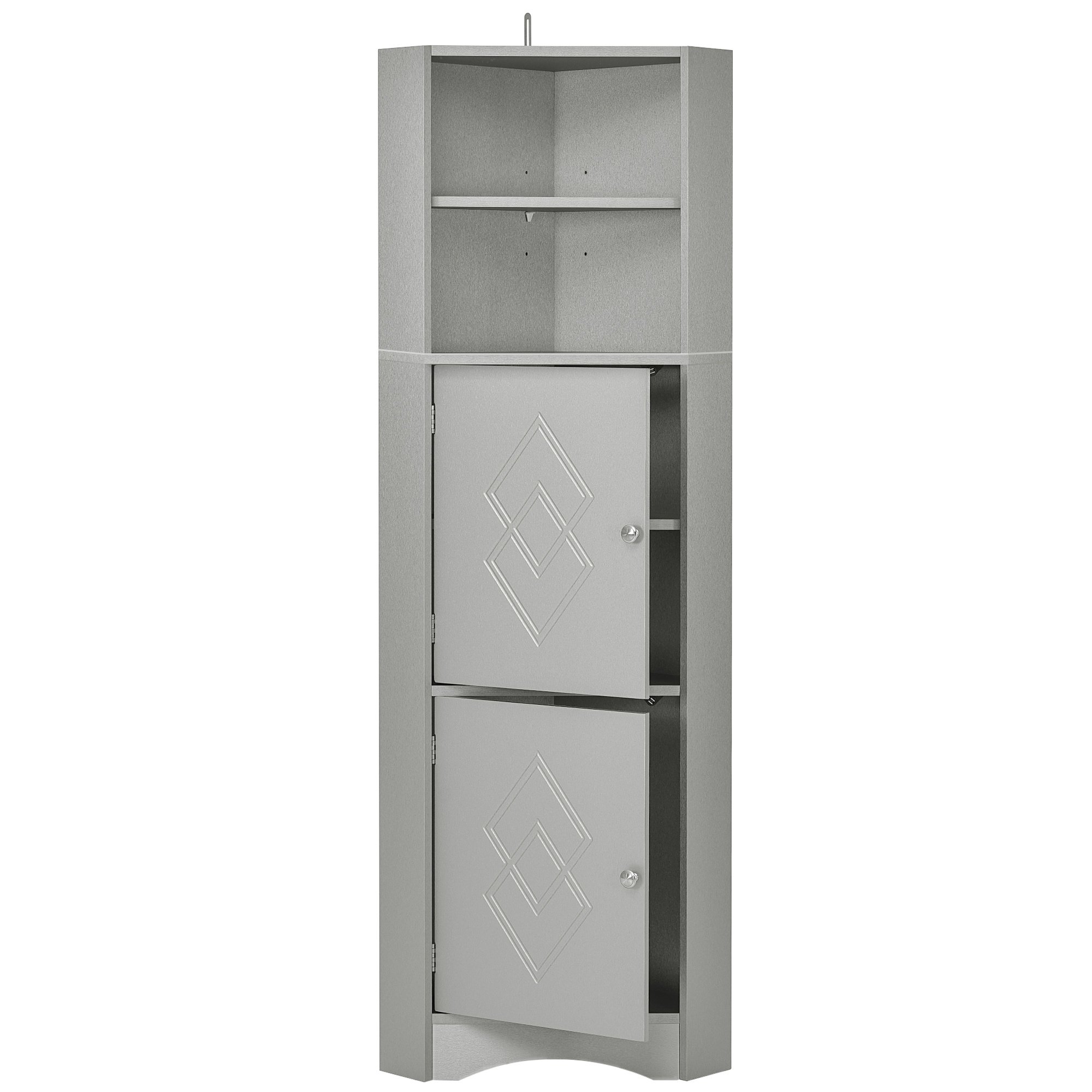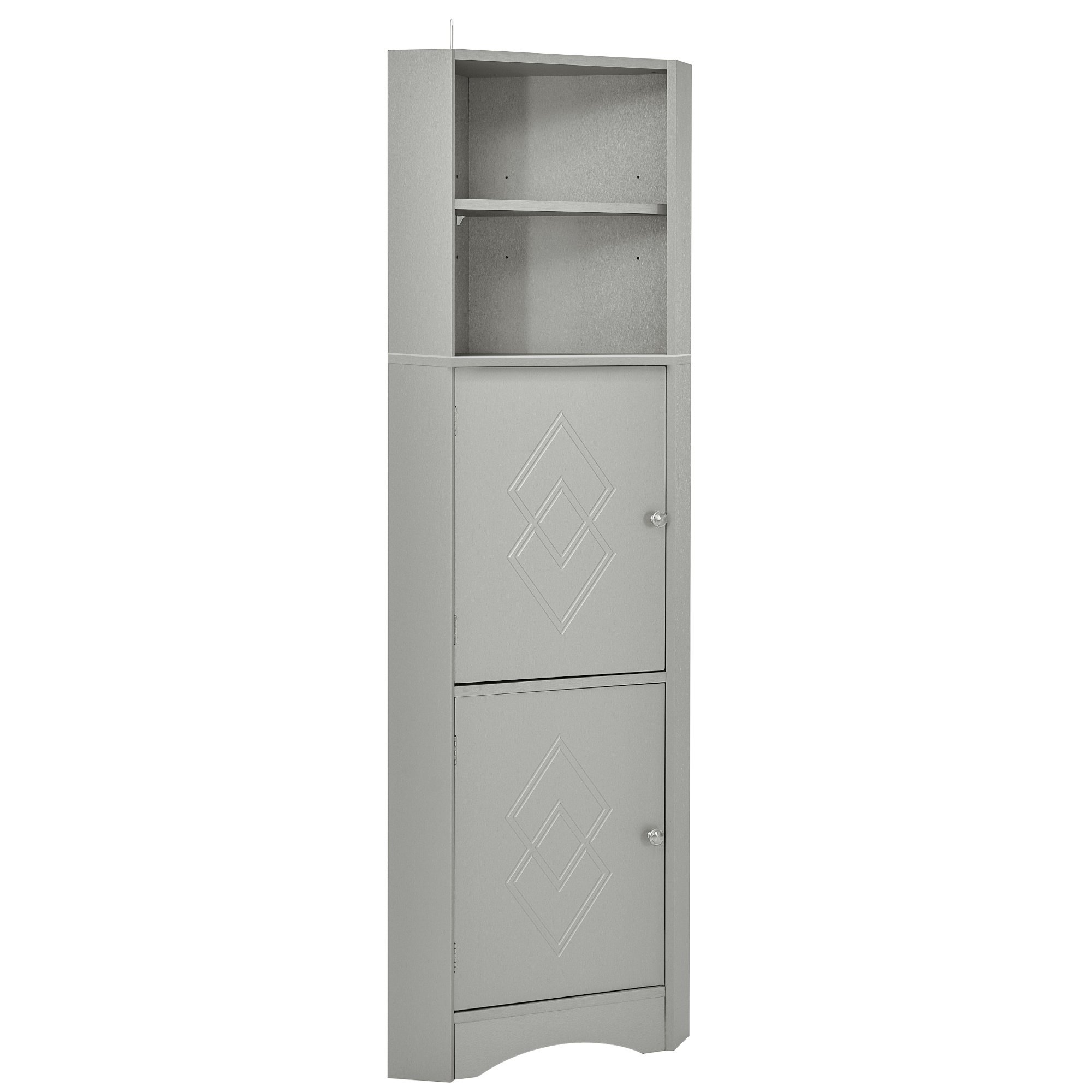Home > Tall Bathroom Corner Cabinet, Freestanding Storage Cabinet with Doors and Adjustable Shelves, MDF Board, Gray