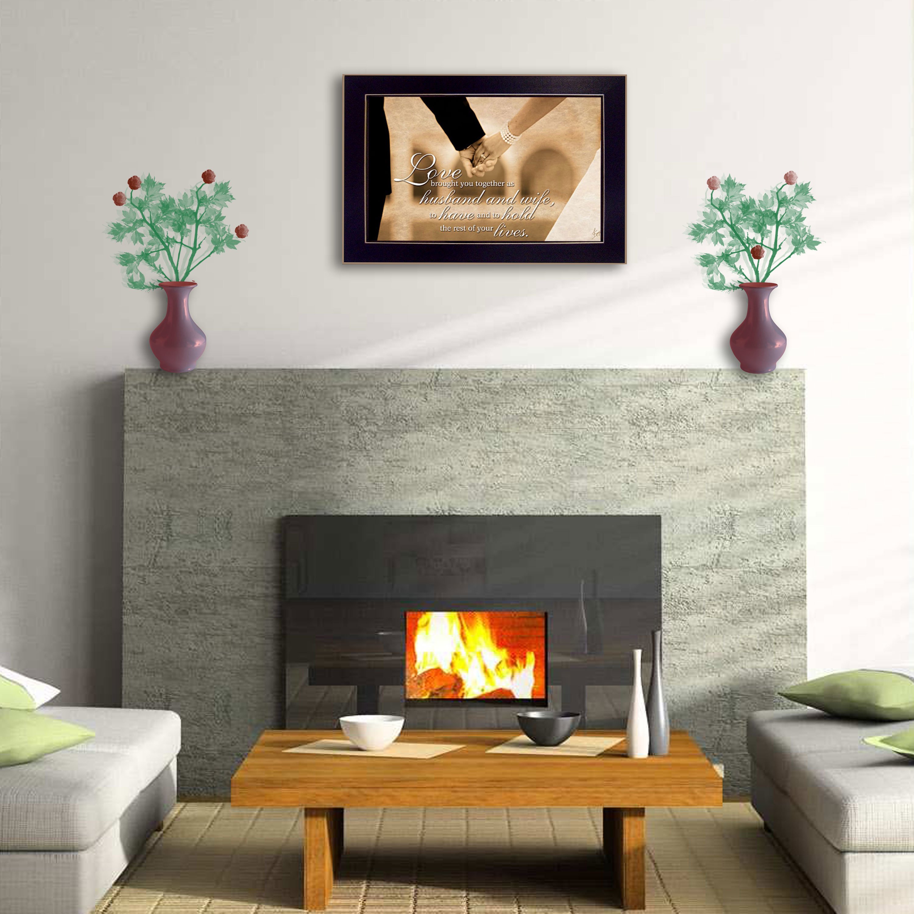 "To Have & To Hold" is a 20" x 14" black framed art print by artist Justin Spivey. This artwork is a man and woman holding hands with words that relate to Love and a husband and wife. This totally American Made wall decor item features an decorative black frame. The print has a protective, archival finish (glass is not needed) and arrives ready to hang. •Women Owned (WBE)•Textured Artwork with a 'rolled on' acid free acrylic coating to create a canvas painting effect. No glass is necessary.•UV protectant coating protects artwork from fading.•Arrives Ready to Hang