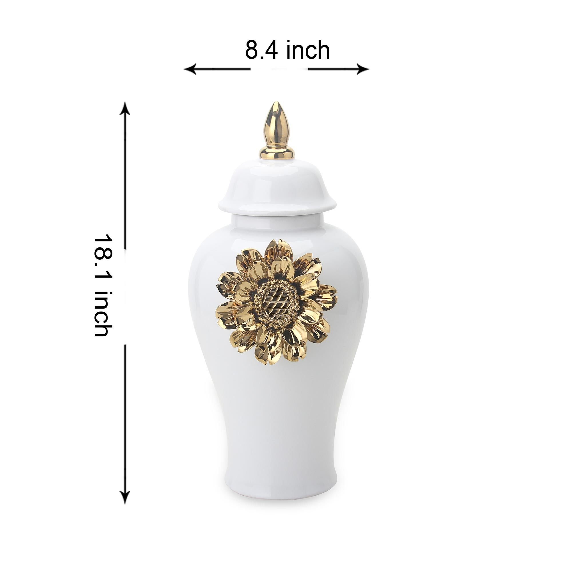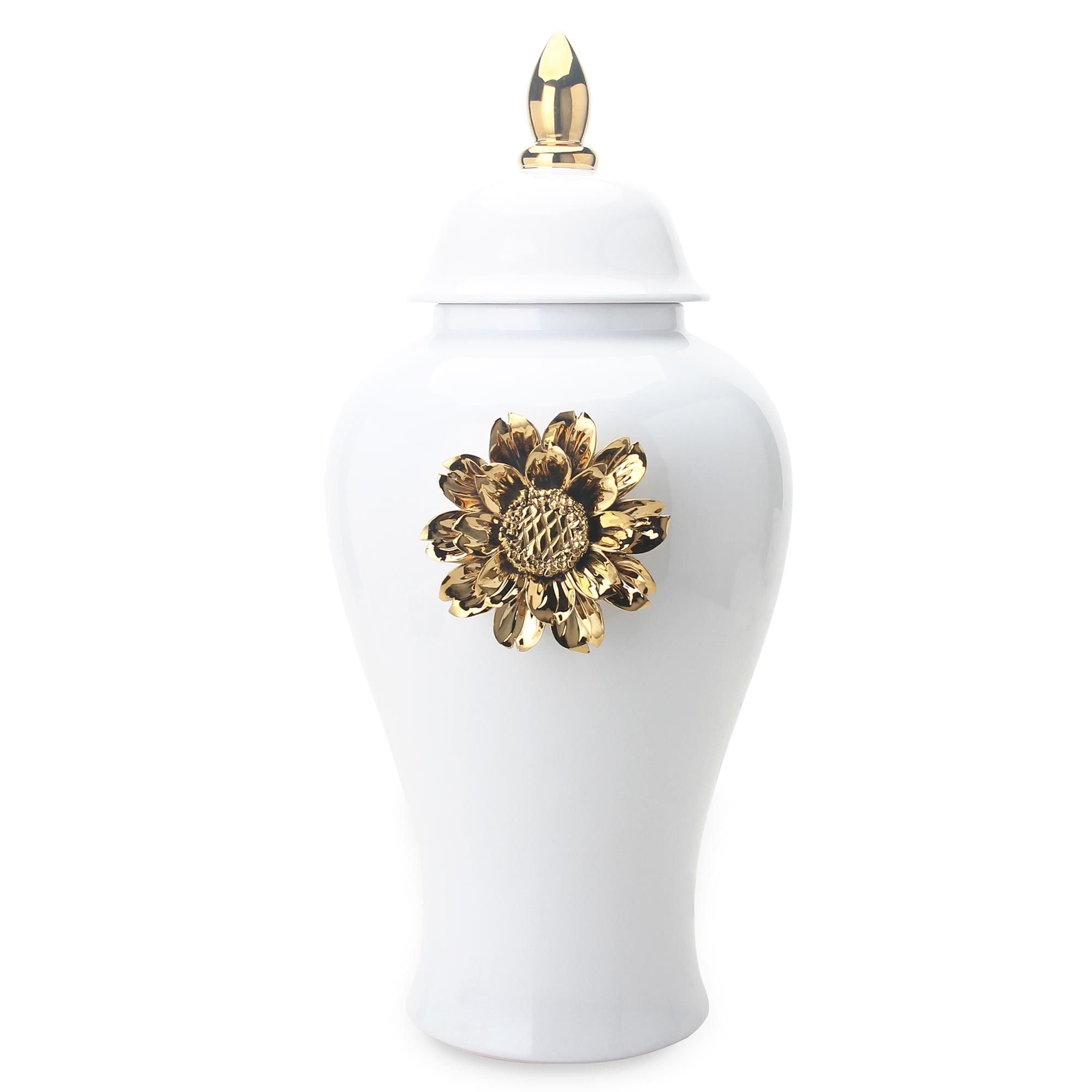 Home > White Ginger Jar with Gilded Flower - Timeless Home Decor
