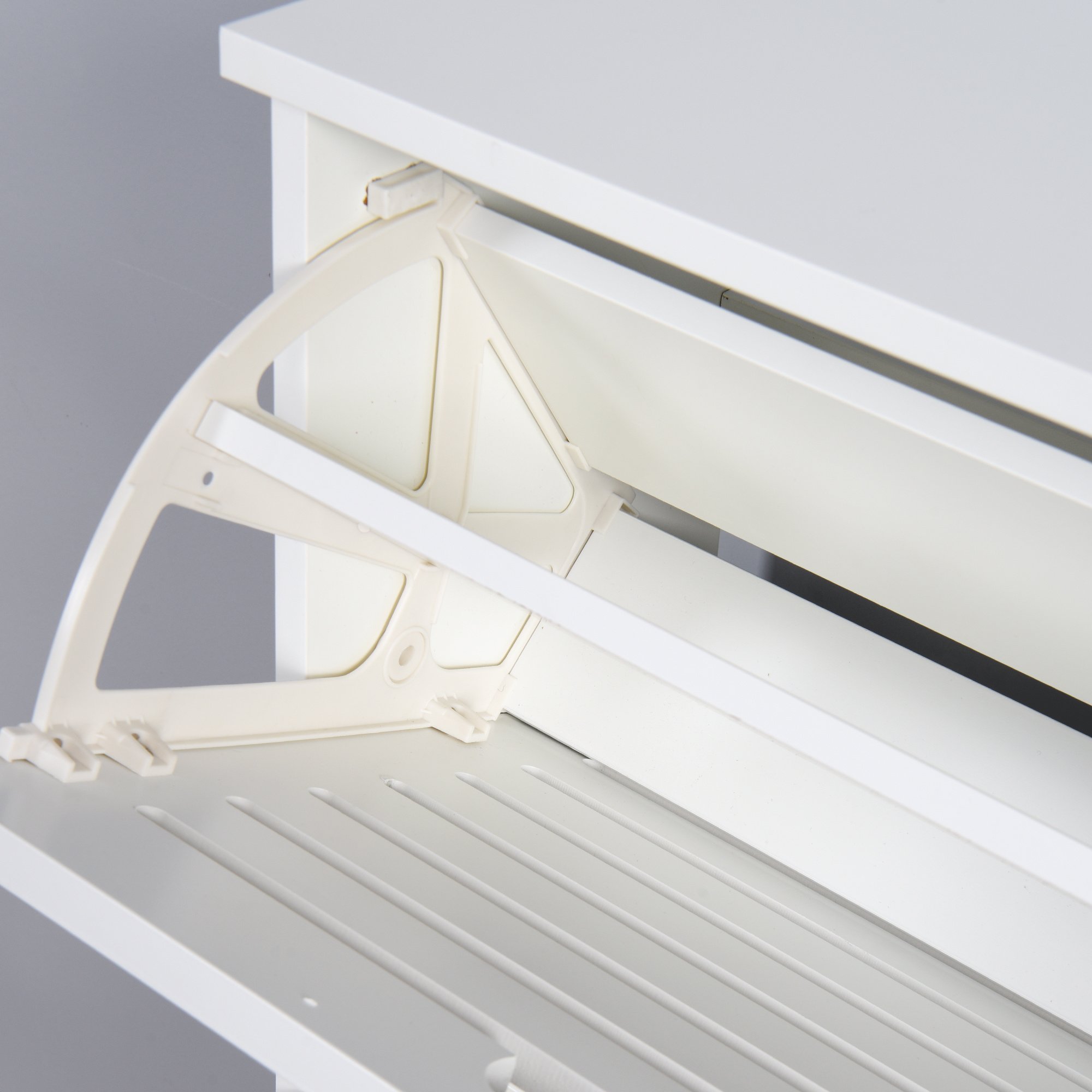 DescriptionParameters:- Dimensions:20.94 x 9.45 x 43.11 inch, - Color: white- Gross weight: 43 lbShipping List:- 1 x Shoe Cabinet- 1 x Instructions- 1 xAccessories BagLARGE STORAGE SPACE: The shoe cabinet has 3 layers of the flip bucket, each layer of the flip bucket has 2 layers of storage space, providing sufficient storage space.STURDY STRUCTURE: The shoe storage cabinet adopts waterproof and durable P2 white particleboard, which is easy to wipe.MODERN FASHION: White looks give a sense of style. Suitable for an entryway, living room, bedroom, and office. This 3 stories white shoe cabinet is suitable for all interior styles. The hidden handle is more beautiful and convenient. Shoe ark can undertake ventilation through the handle, prevent peculiar smell, easy to cleanProduct DimensionsAssembled Length (in.):20.94Assembled Width (in.):9.45Assembled Height (in.):43.11Weight (lbs.):40.45Package SizeLength (in.):44.90Width (in.):15.60Height (in.):5.98Weight (lbs.):43.00